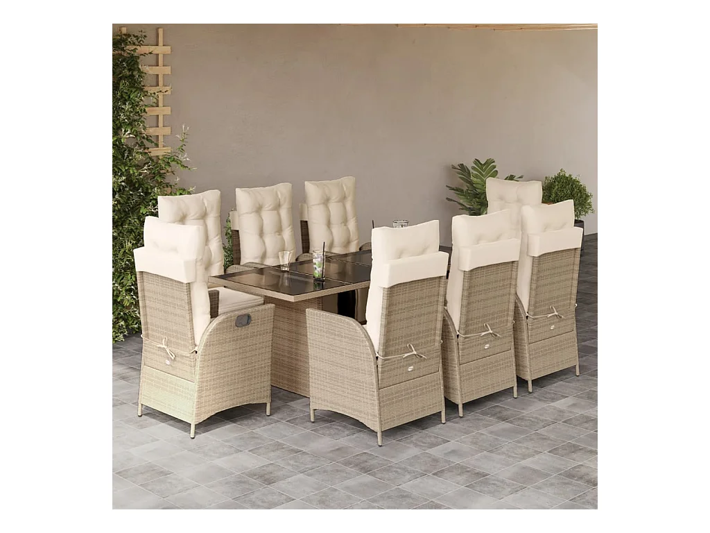 Ensemble à manger de jardin et coussins 9 pcs beige Poly rotin