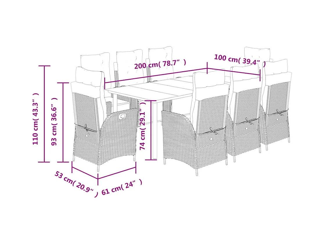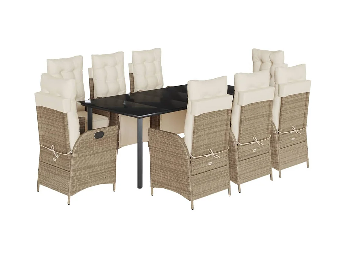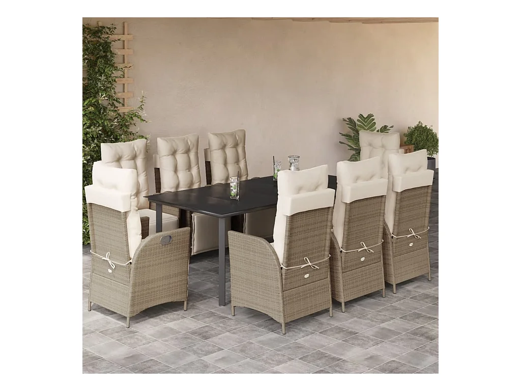 Ensemble à manger de jardin et coussins 9 pcs beige Poly rotin