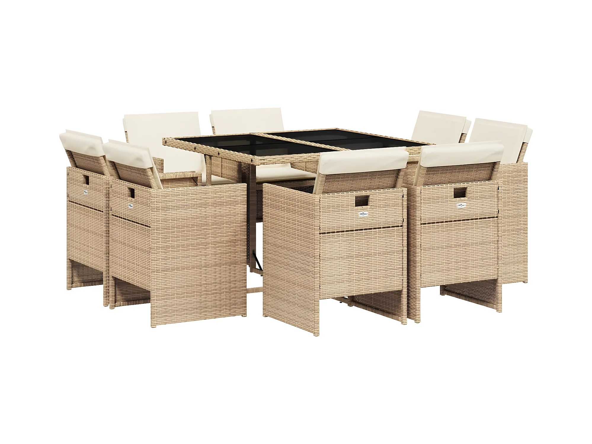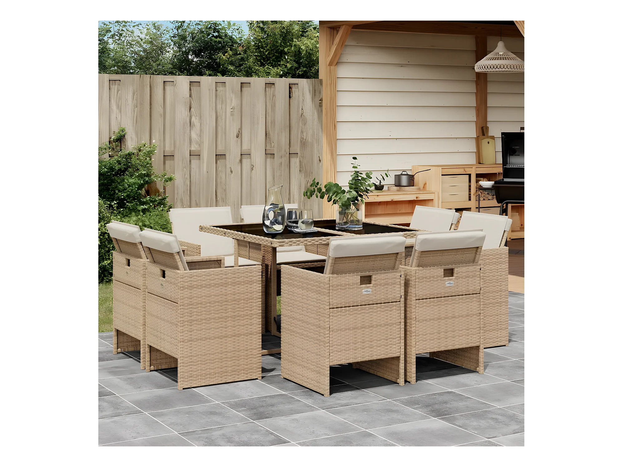 Ensemble à manger de jardin et coussins 9 pcs beige Poly rotin