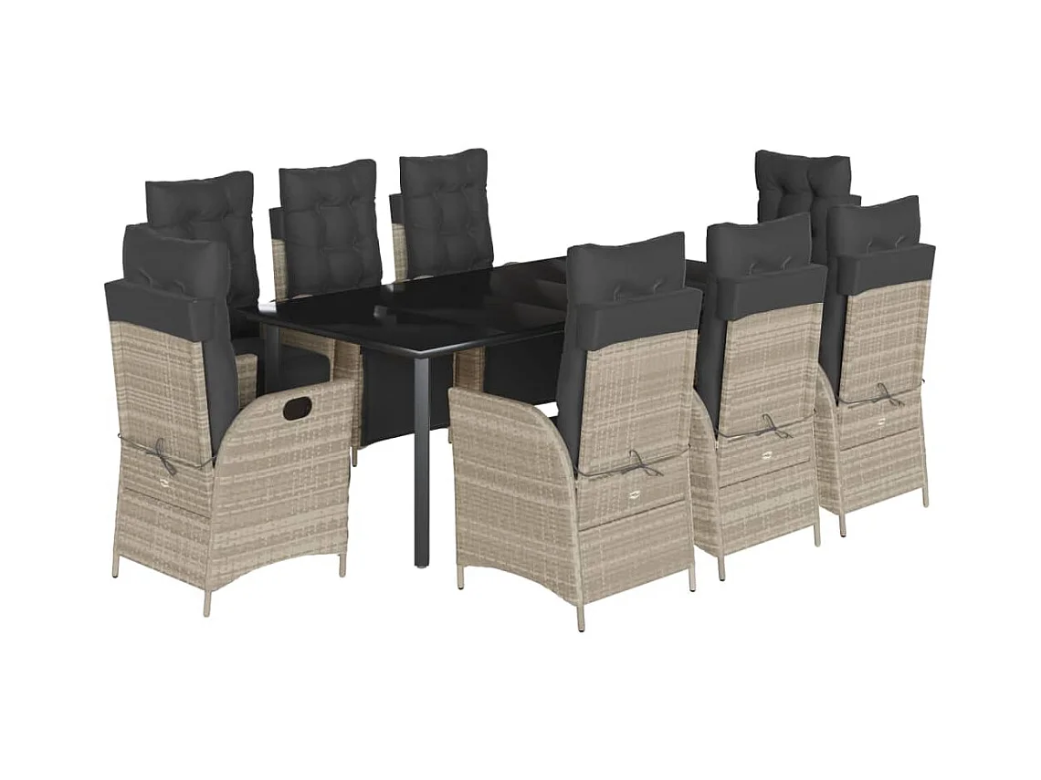 Ensemble à manger de jardin et coussins 9 pcs gris clair rotin