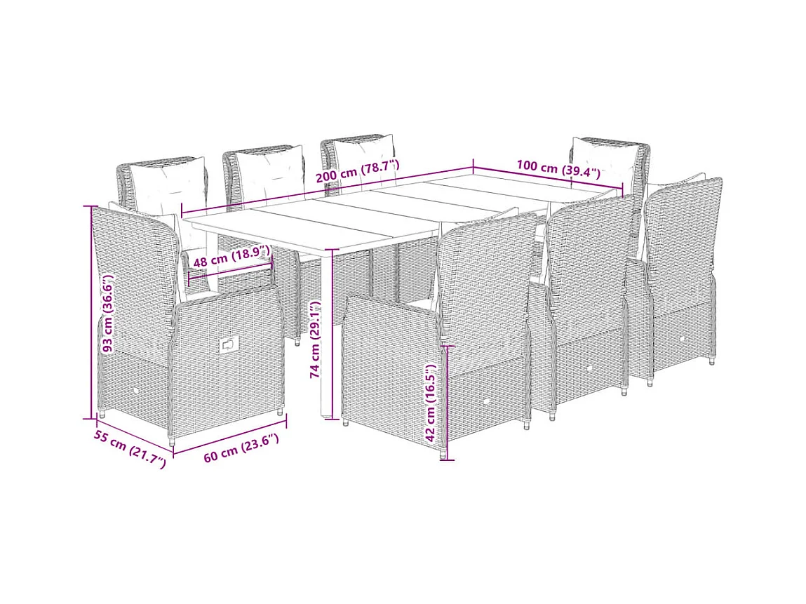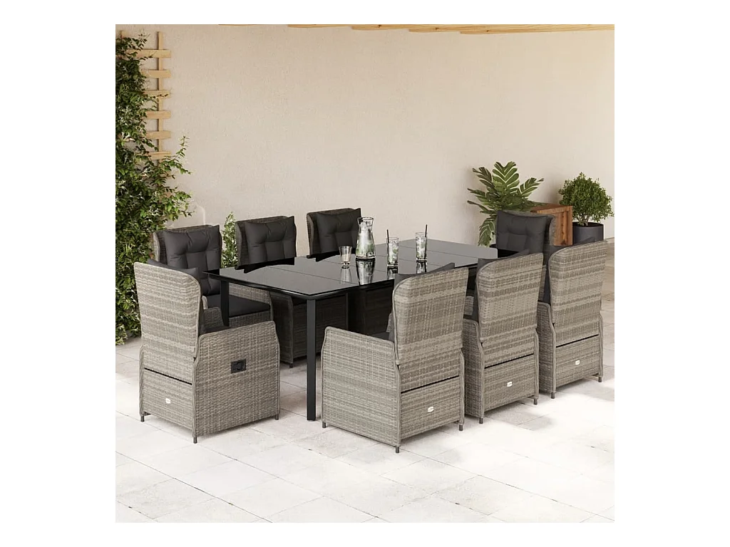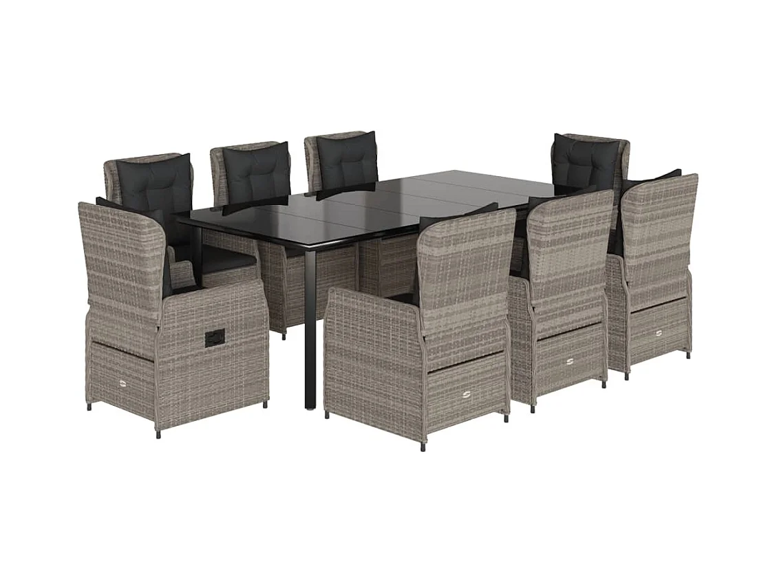Ensemble à manger de jardin et coussins 9 pcs gris clair rotin