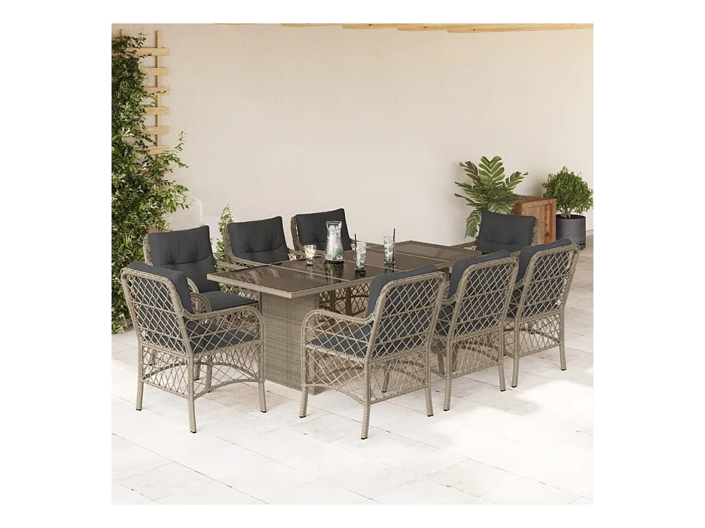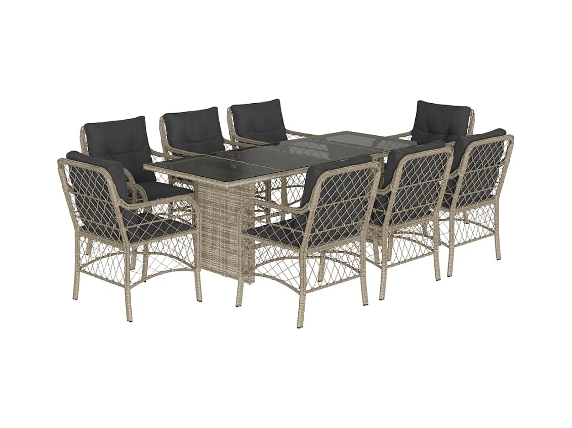 Ensemble à manger de jardin et coussins 9 pcs gris clair rotin
