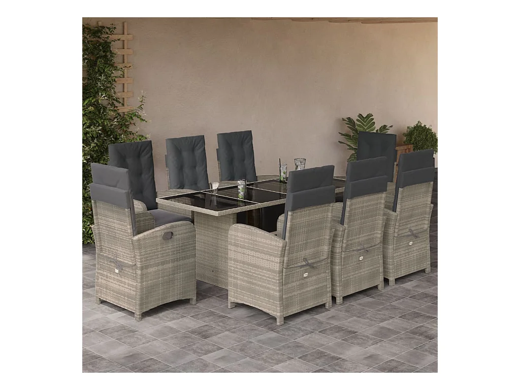 Ensemble à manger de jardin et coussins 9 pcs gris clair rotin