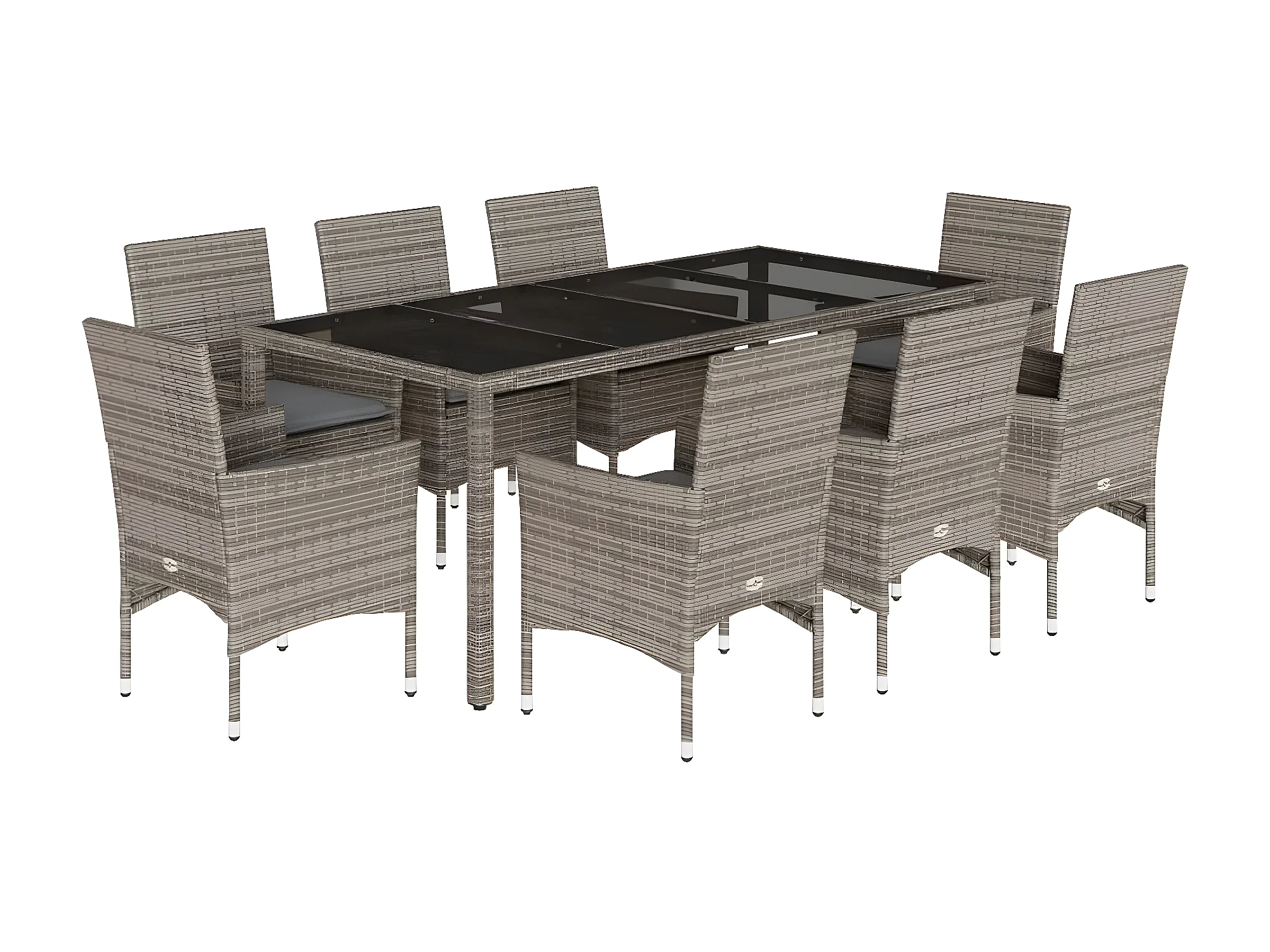 Ensemble à manger de jardin et coussins 9 pcs gris rotin verre