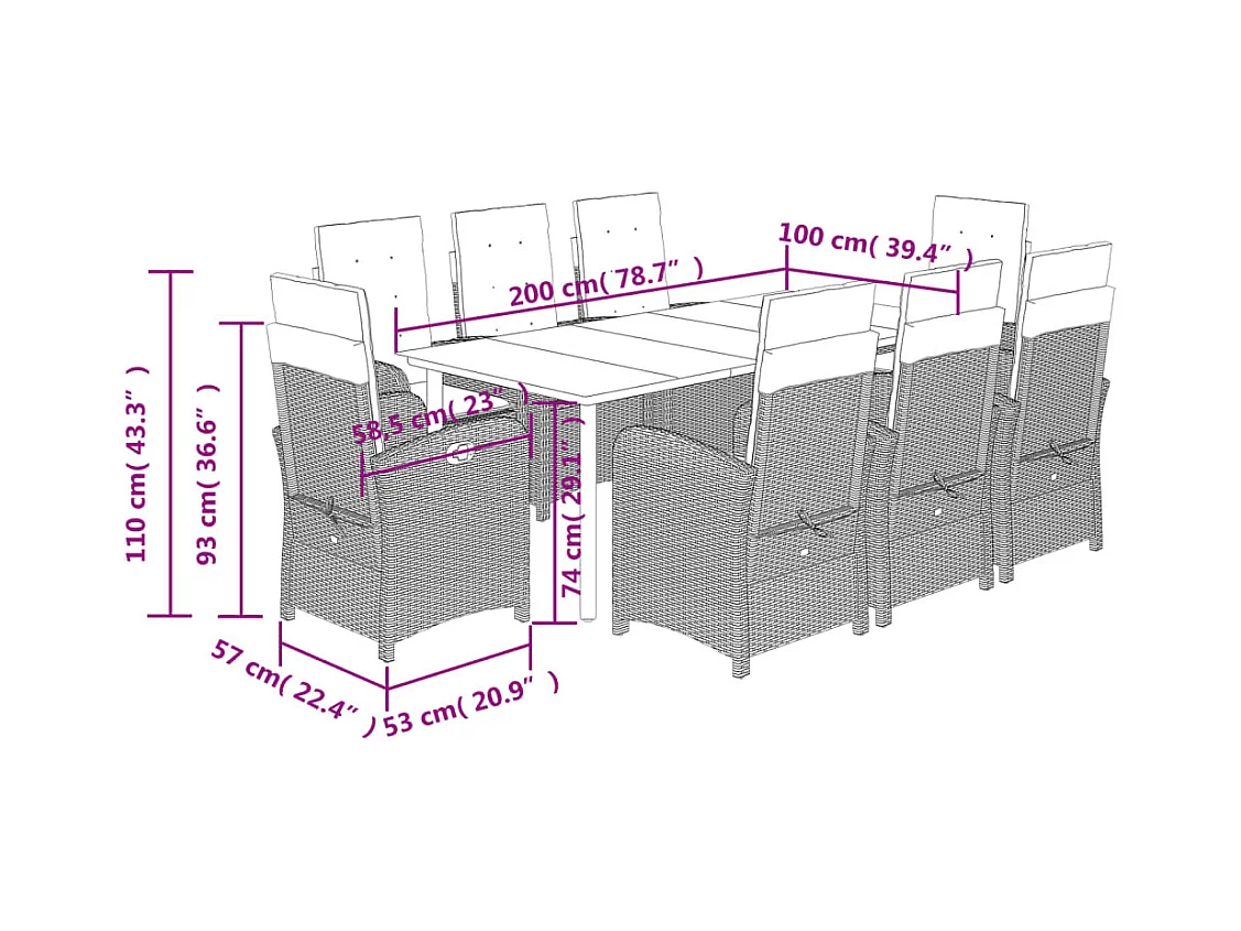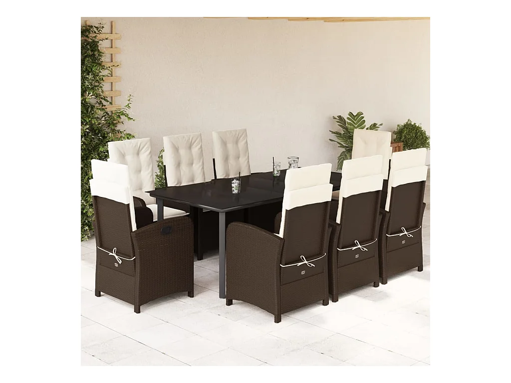 Ensemble à manger de jardin et coussins 9 pcs marron poly rotin
