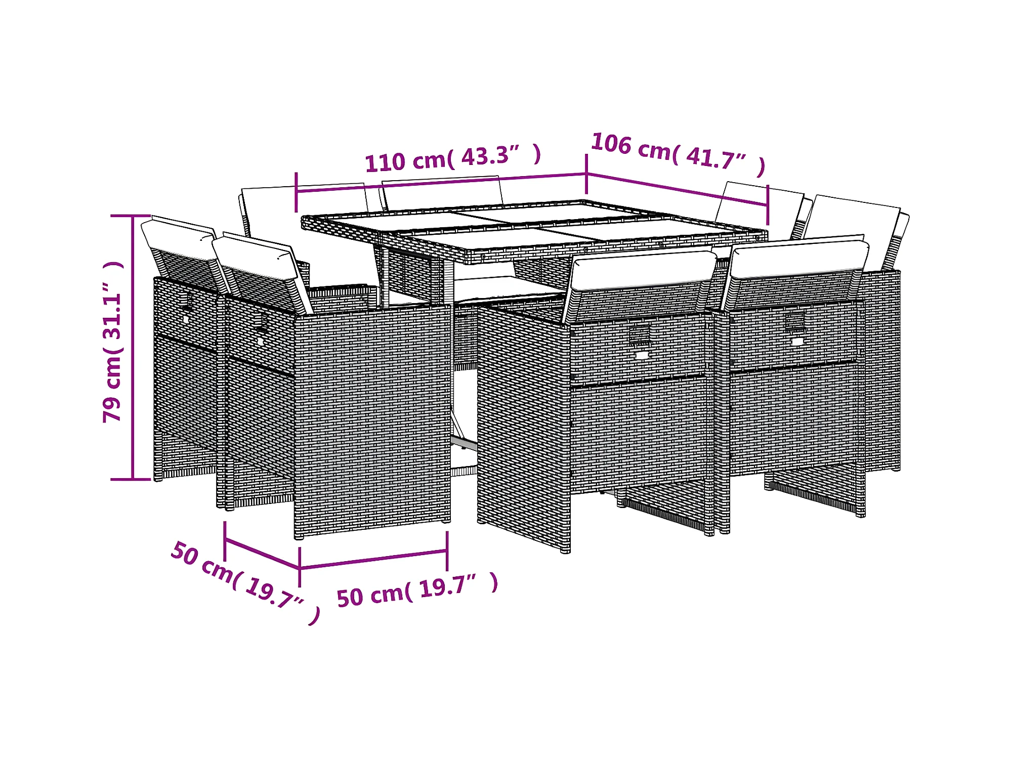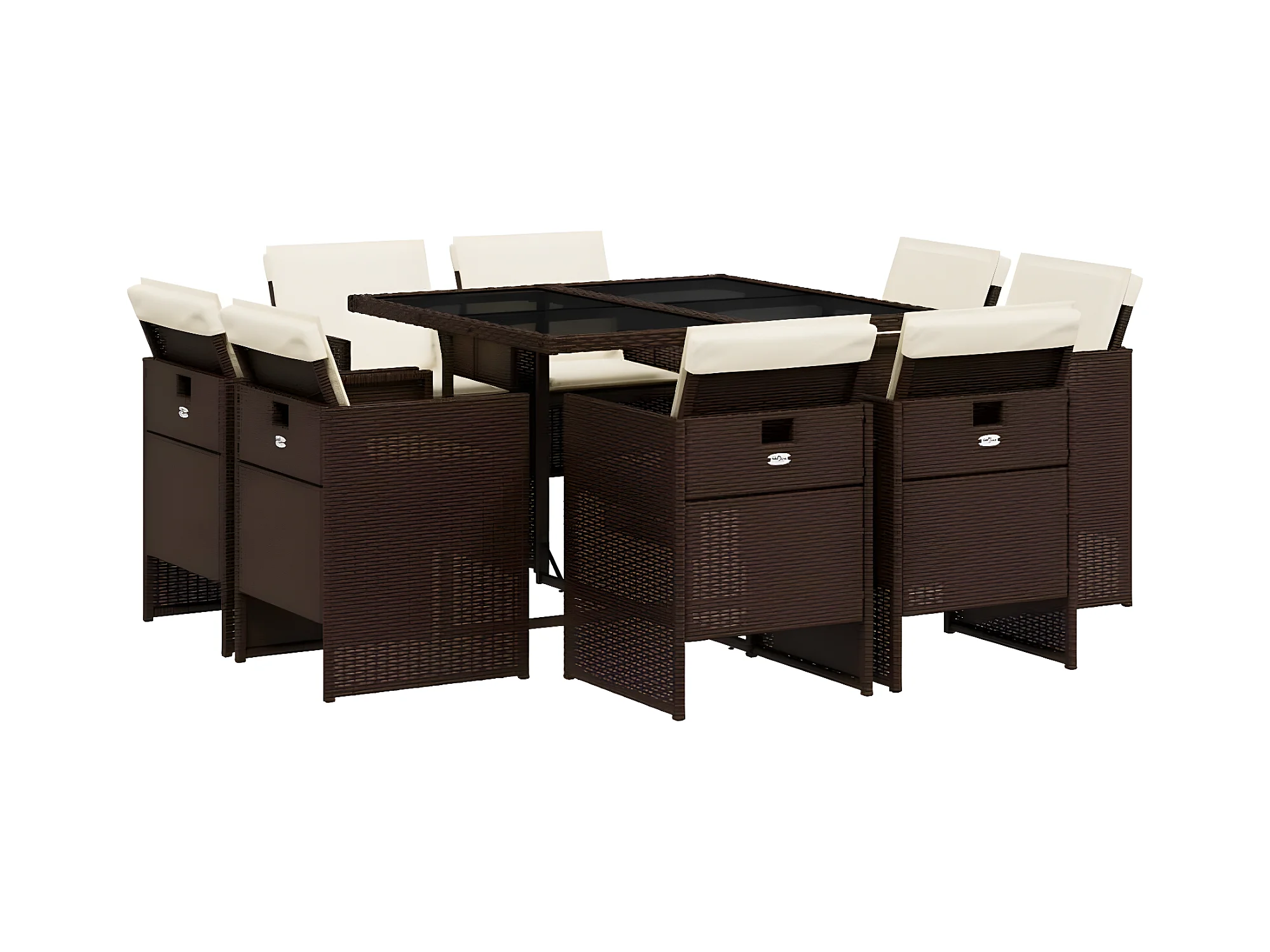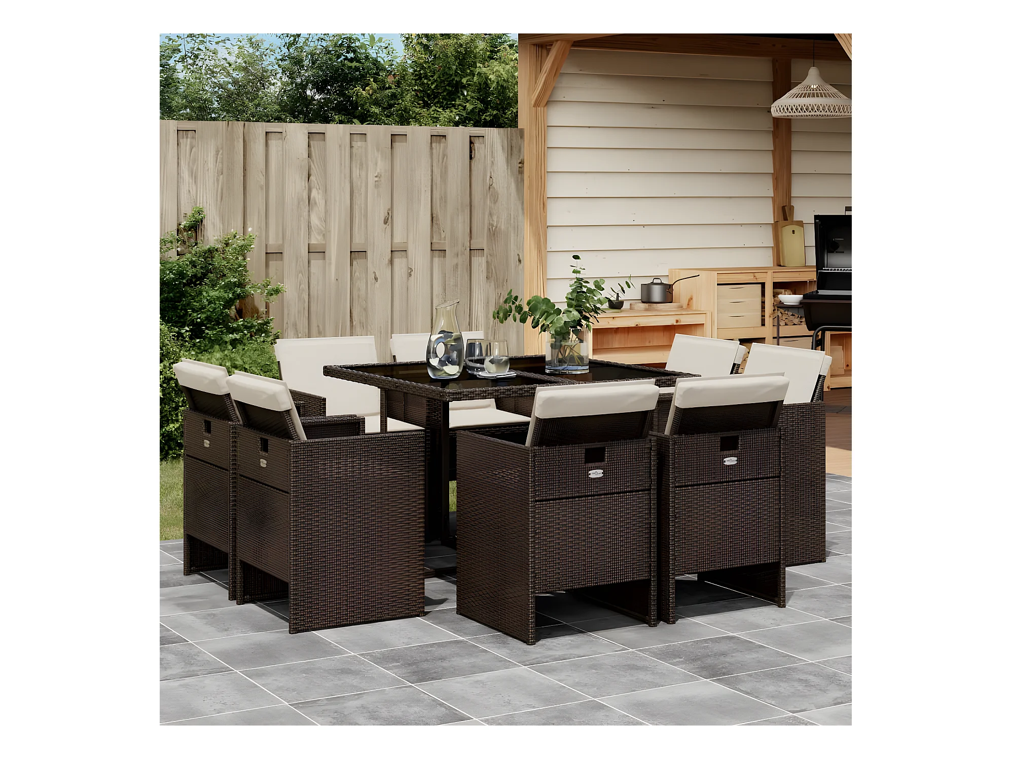 Ensemble à manger de jardin et coussins 9 pcs marron poly rotin