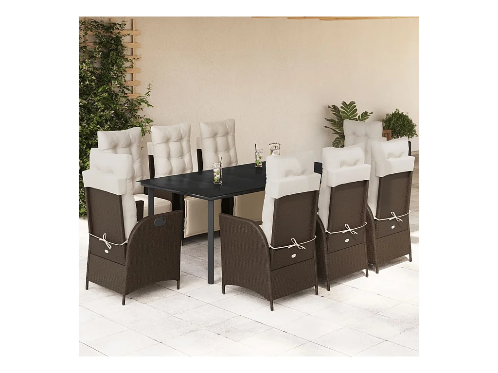 Ensemble à manger de jardin et coussins 9 pcs marron poly rotin