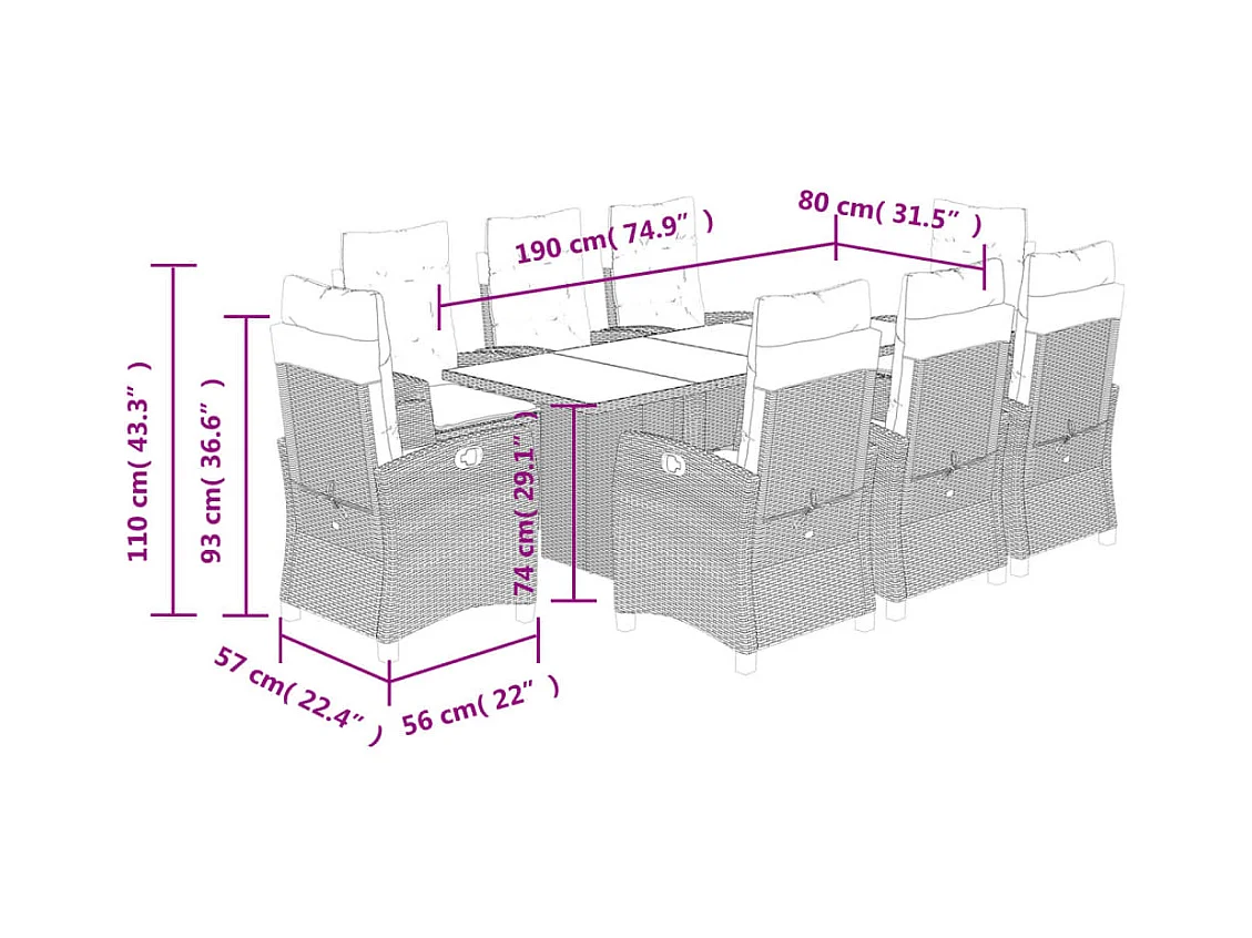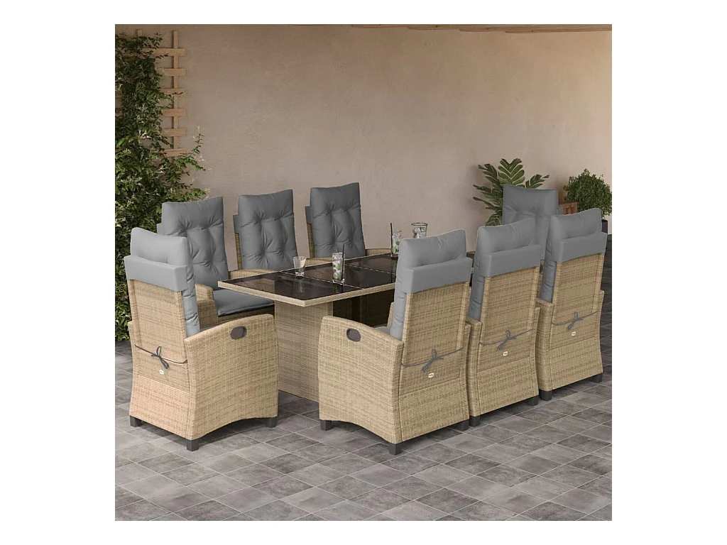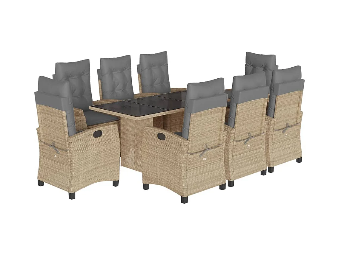 Ensemble à manger de jardin et coussins 9 pcs mélange beige