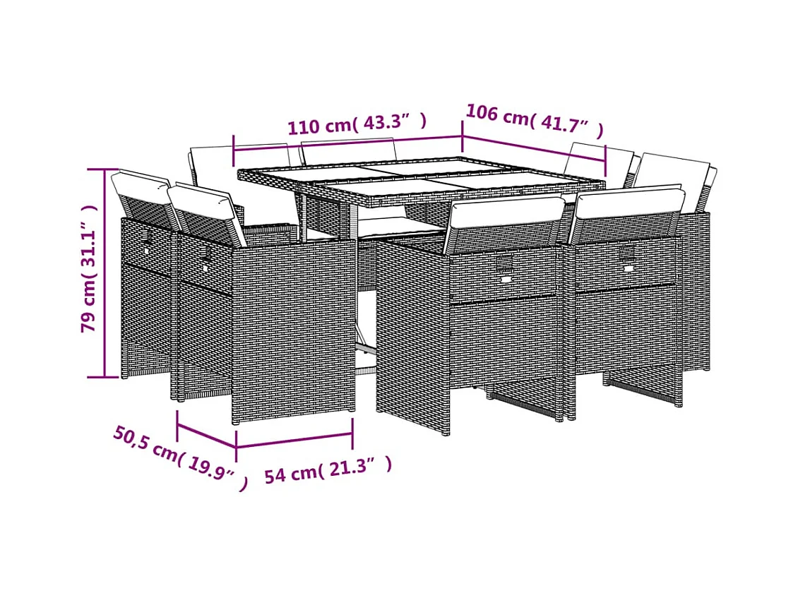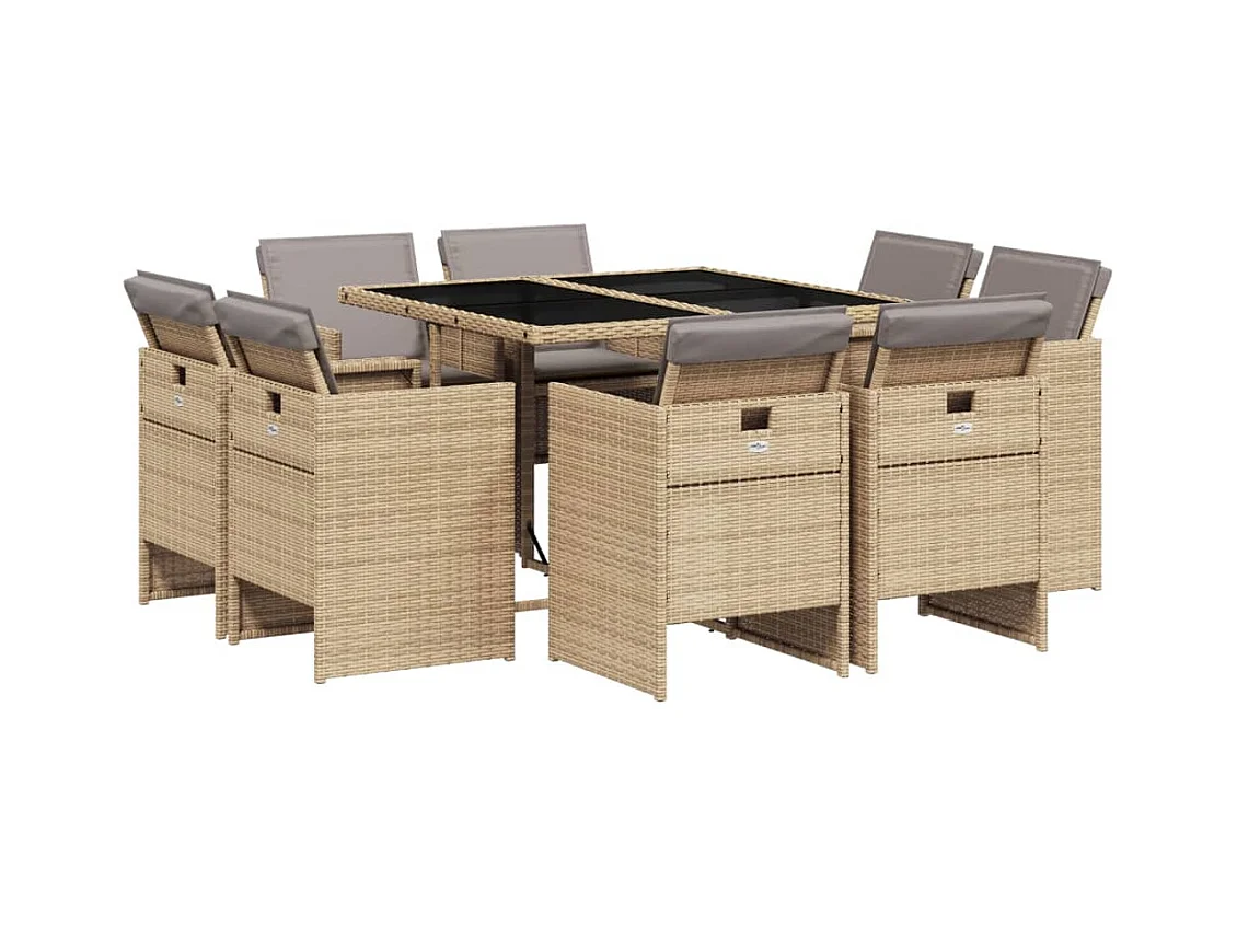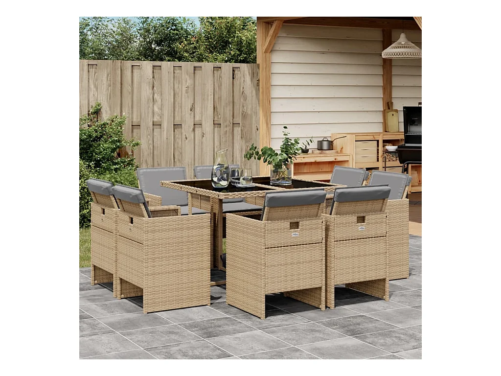 Ensemble à manger de jardin et coussins 9 pcs mélange beige