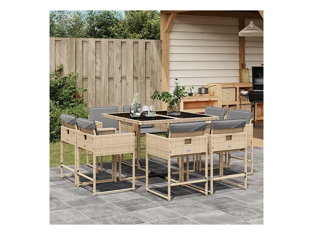 Ensemble à manger de jardin et coussins 9 pcs mélange beige