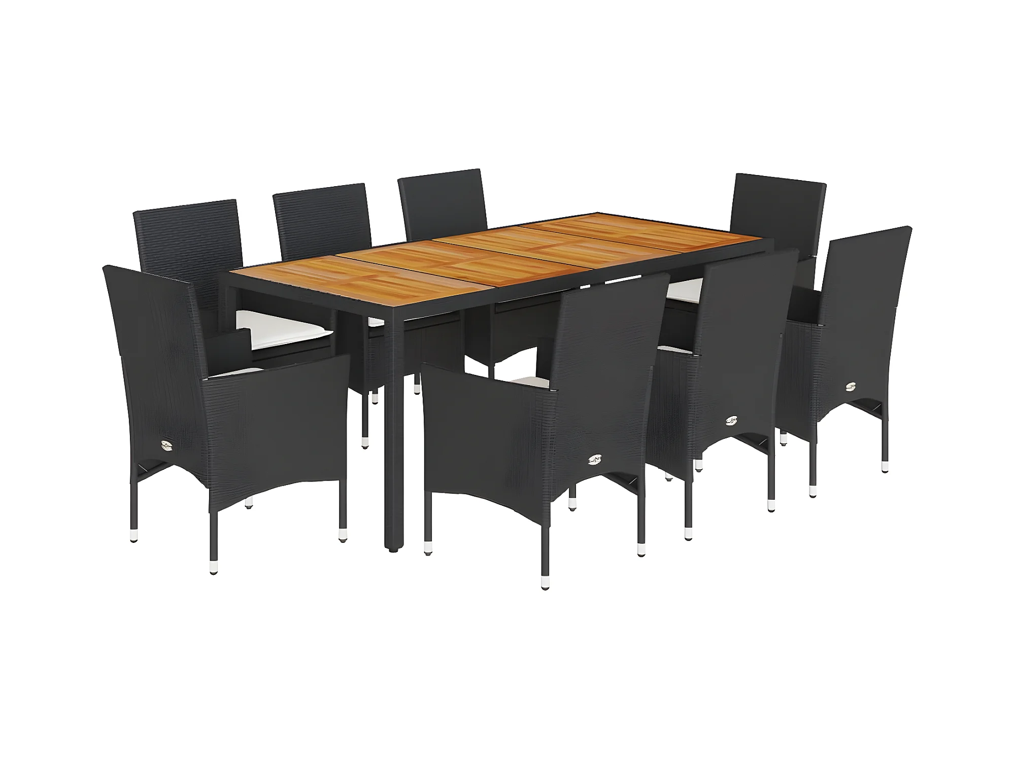 Ensemble à manger de jardin et coussins 9 pcs noir rotin acacia