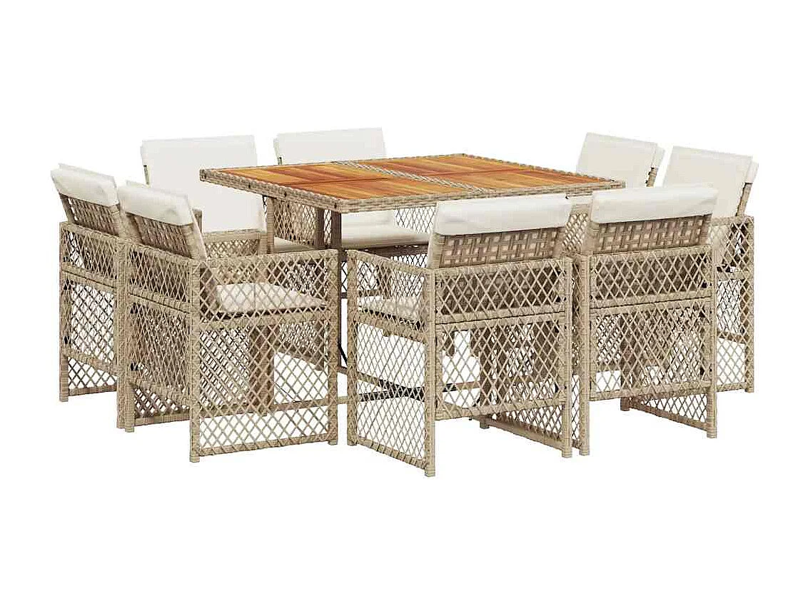 Ensemble à manger de jardin et coussins 9 pièces beige Poly rotin