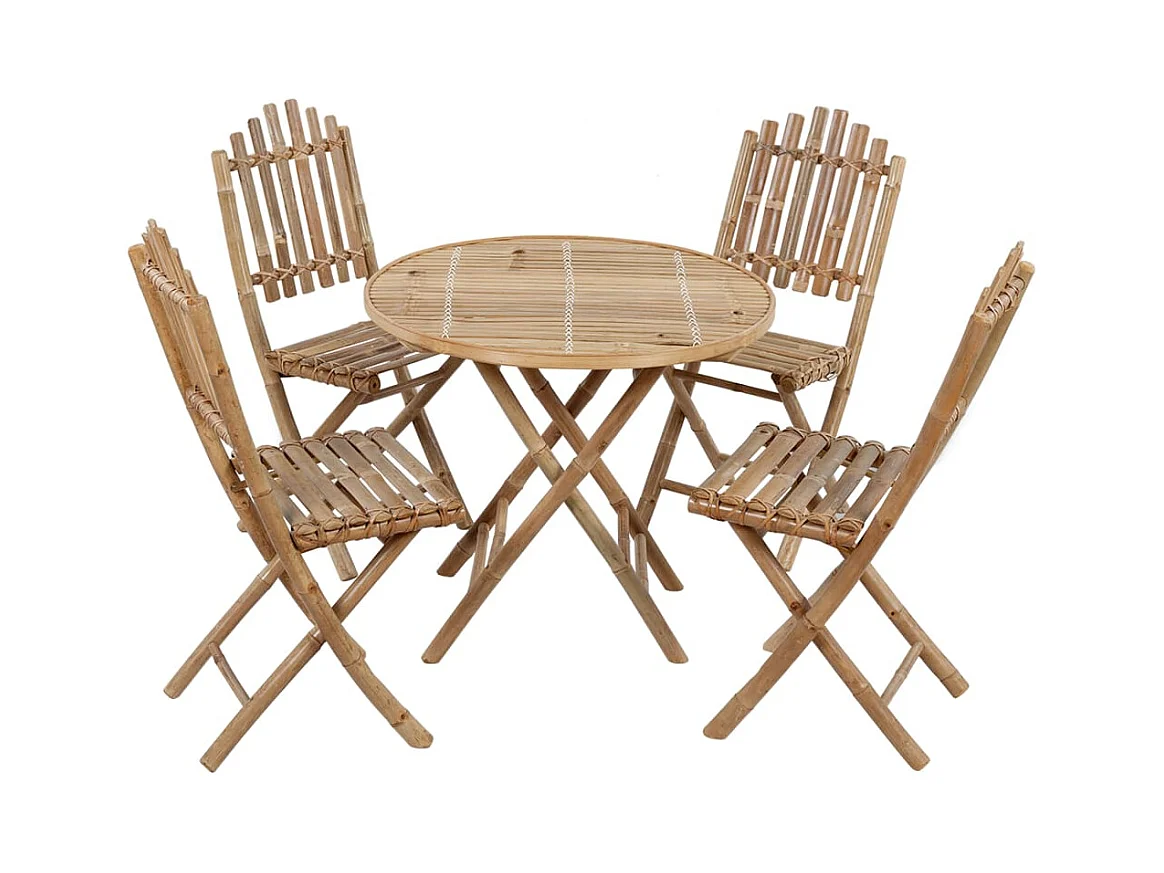 Ensemble à manger d'extérieur pliable 5pcs avec coussins Bambou