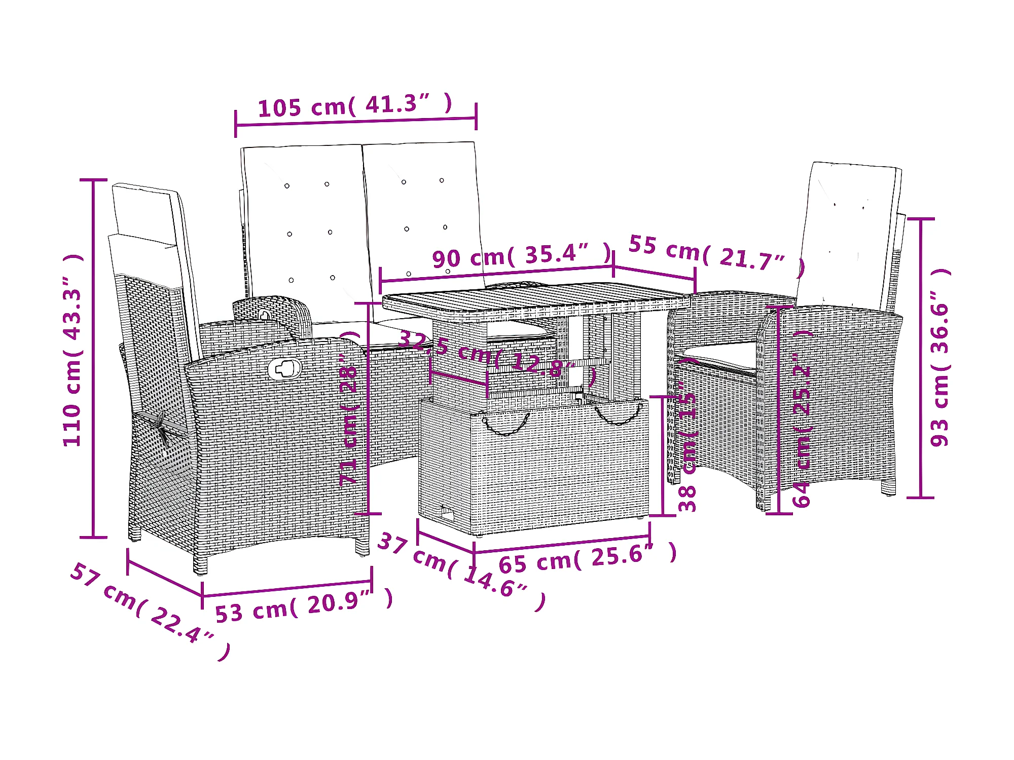 Ensemble à manger jardin 4pcs et coussins Gris Résine tressée