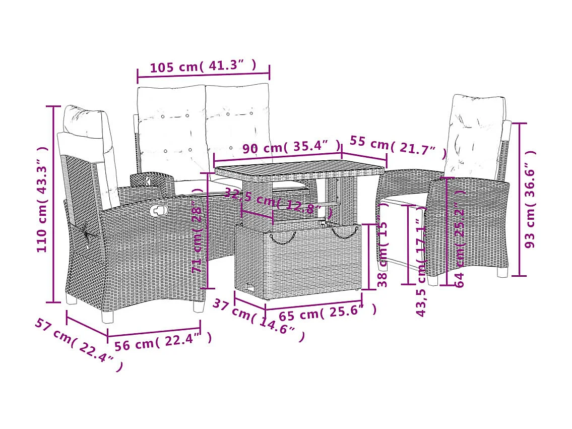 Ensemble à manger jardin 4pcs et coussins Gris Résine tressée