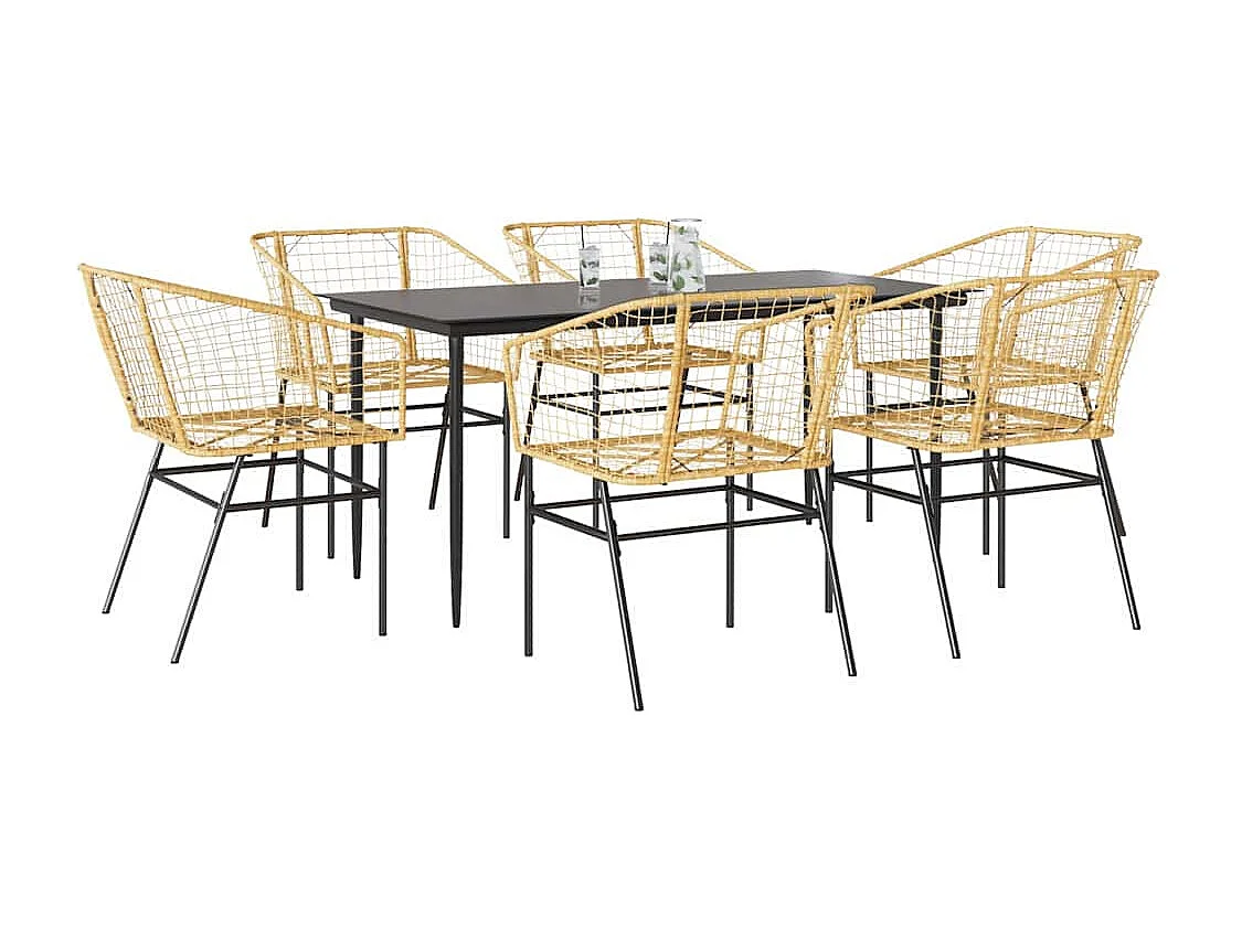 Ensemble à manger jardin 7pièces marron rpoly otin verre