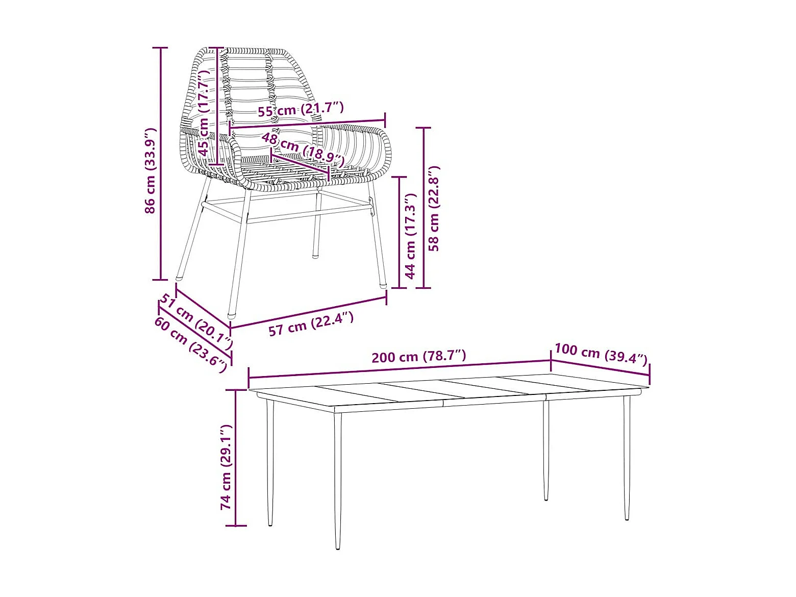 Ensemble à manger jardin 7pièces marron rpoly otin verre