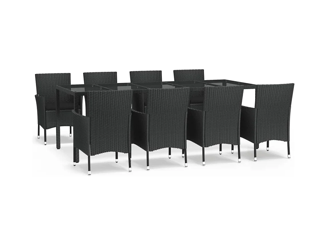 Ensemble à manger jardin 9pcs et coussins noir résine tressée