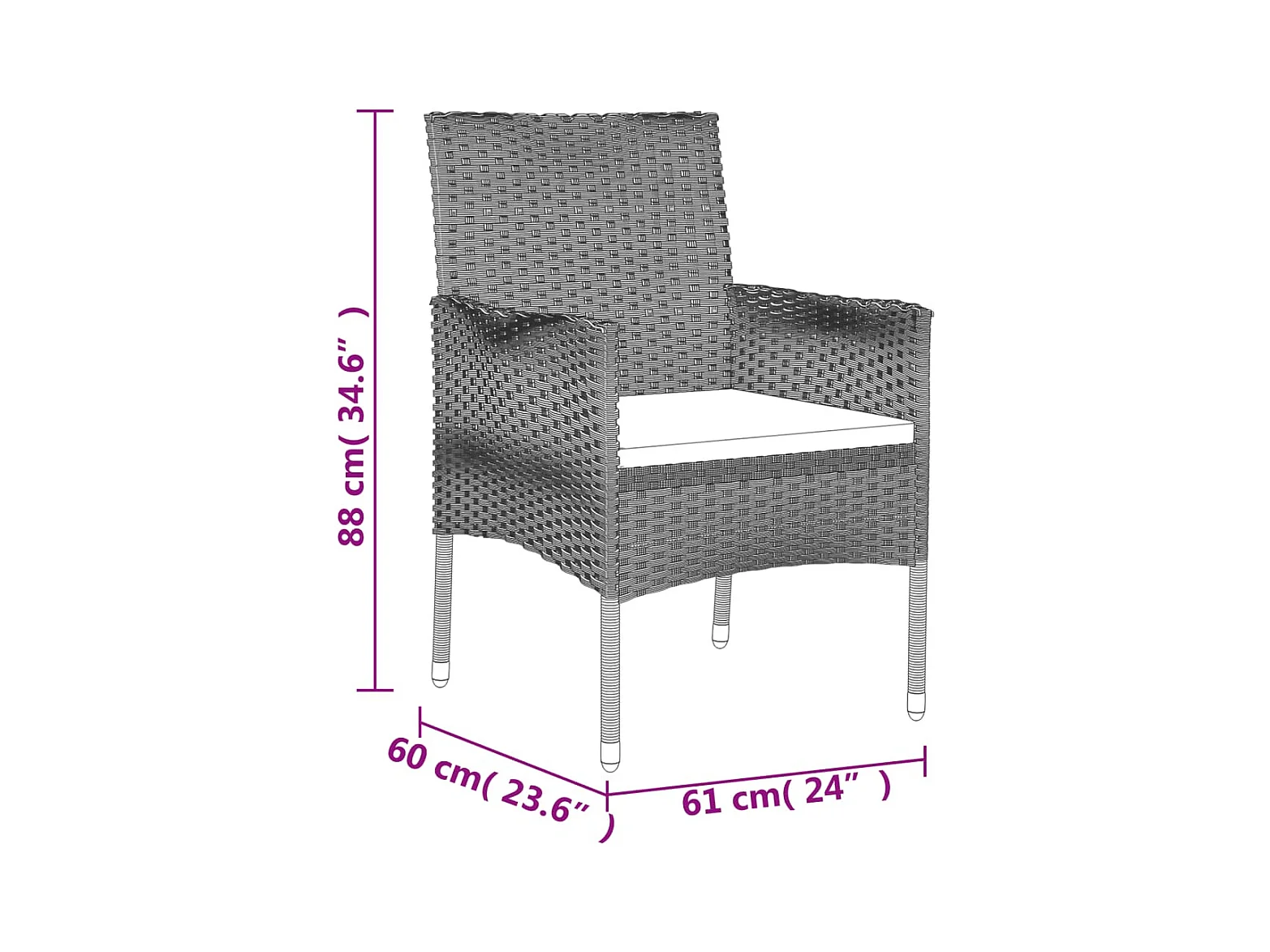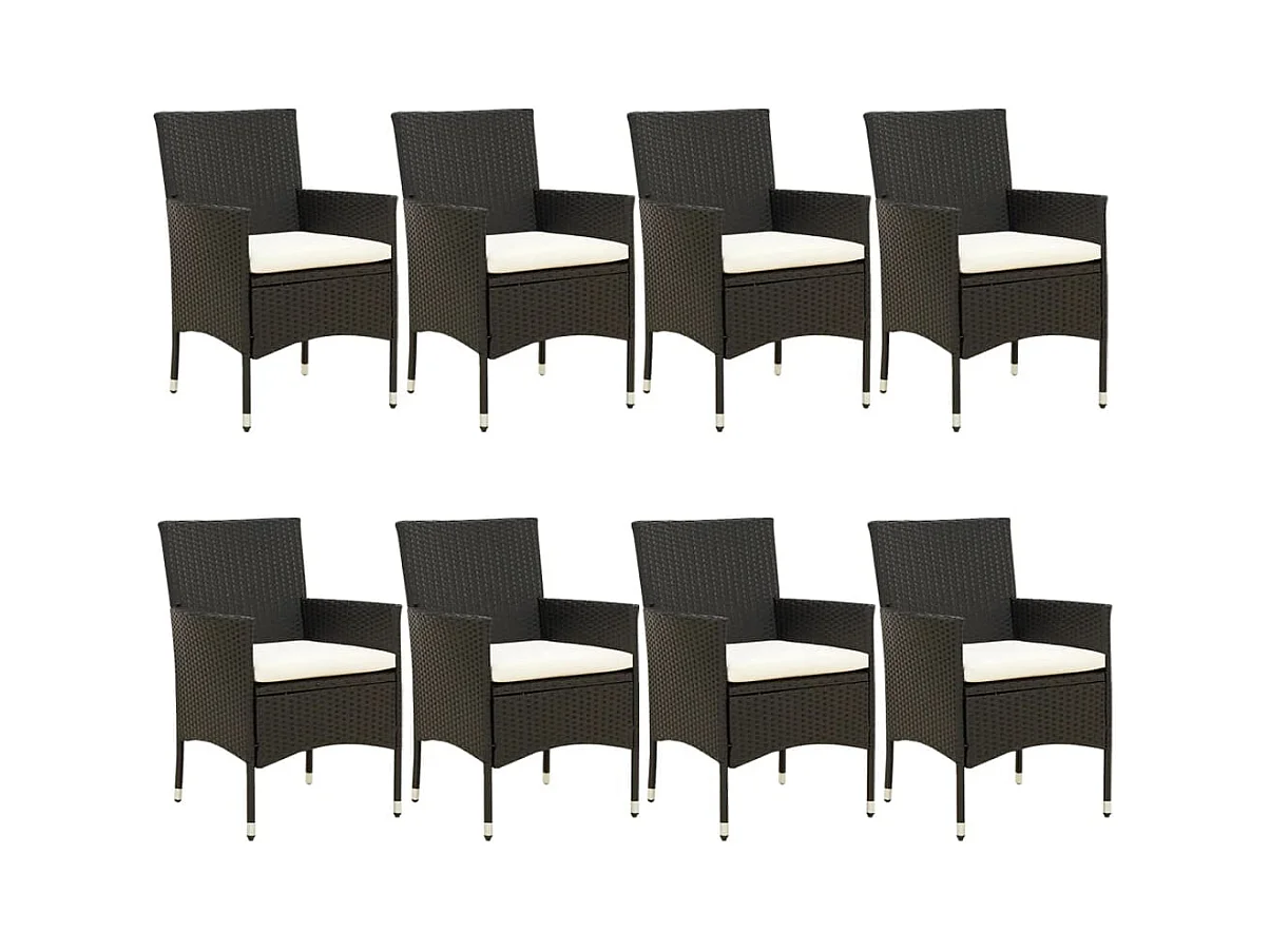 Ensemble à manger jardin 9pcs et coussins noir résine tressée