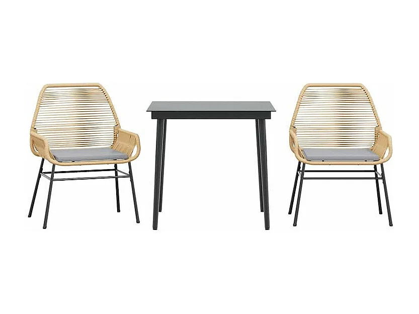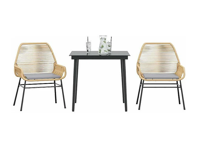 Ensemble à manger jardin coussins 3pcs marron poly rotin verre