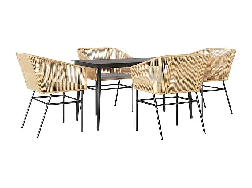 Ensemble à manger jardin coussins 5pcs marron poly rotin verre
