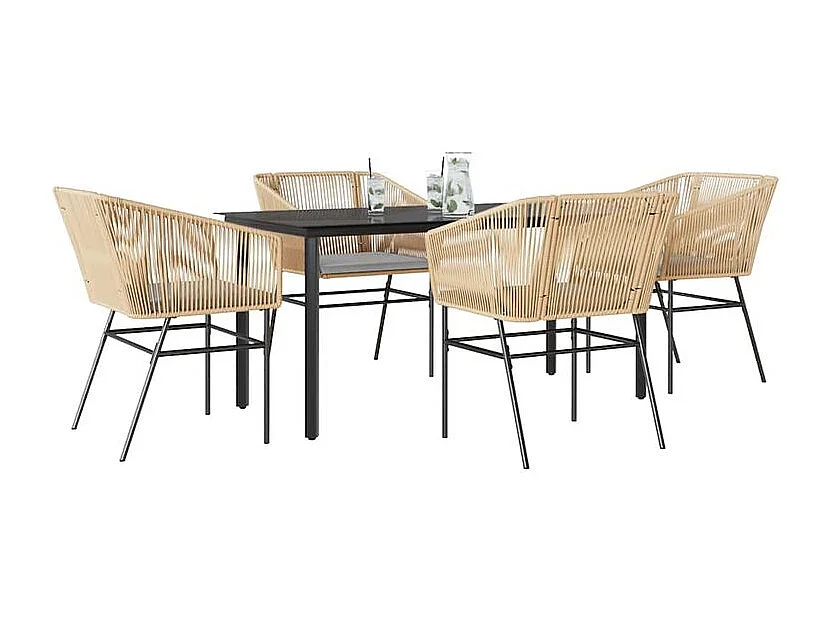 Ensemble à manger jardin coussins 5pcs marron poly rotin verre