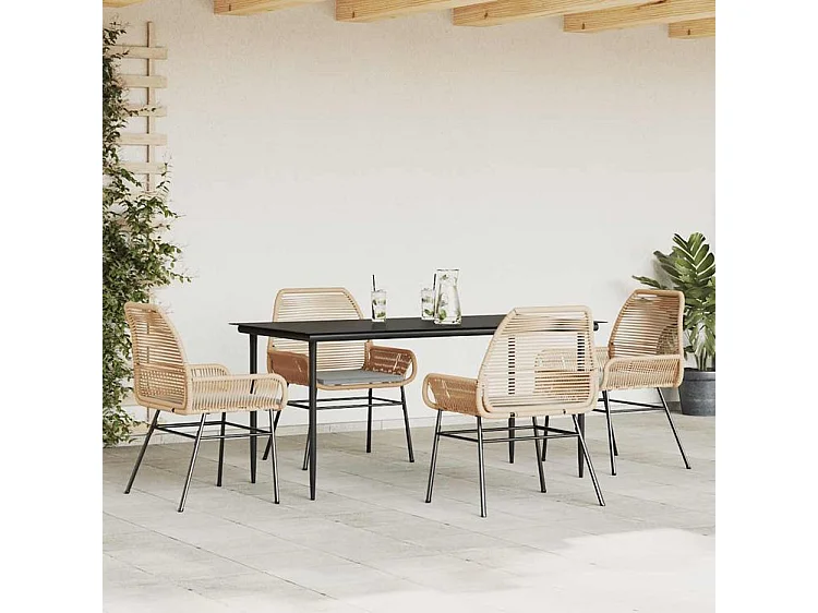 Ensemble à manger jardin coussins 5pcs marron poly rotin verre