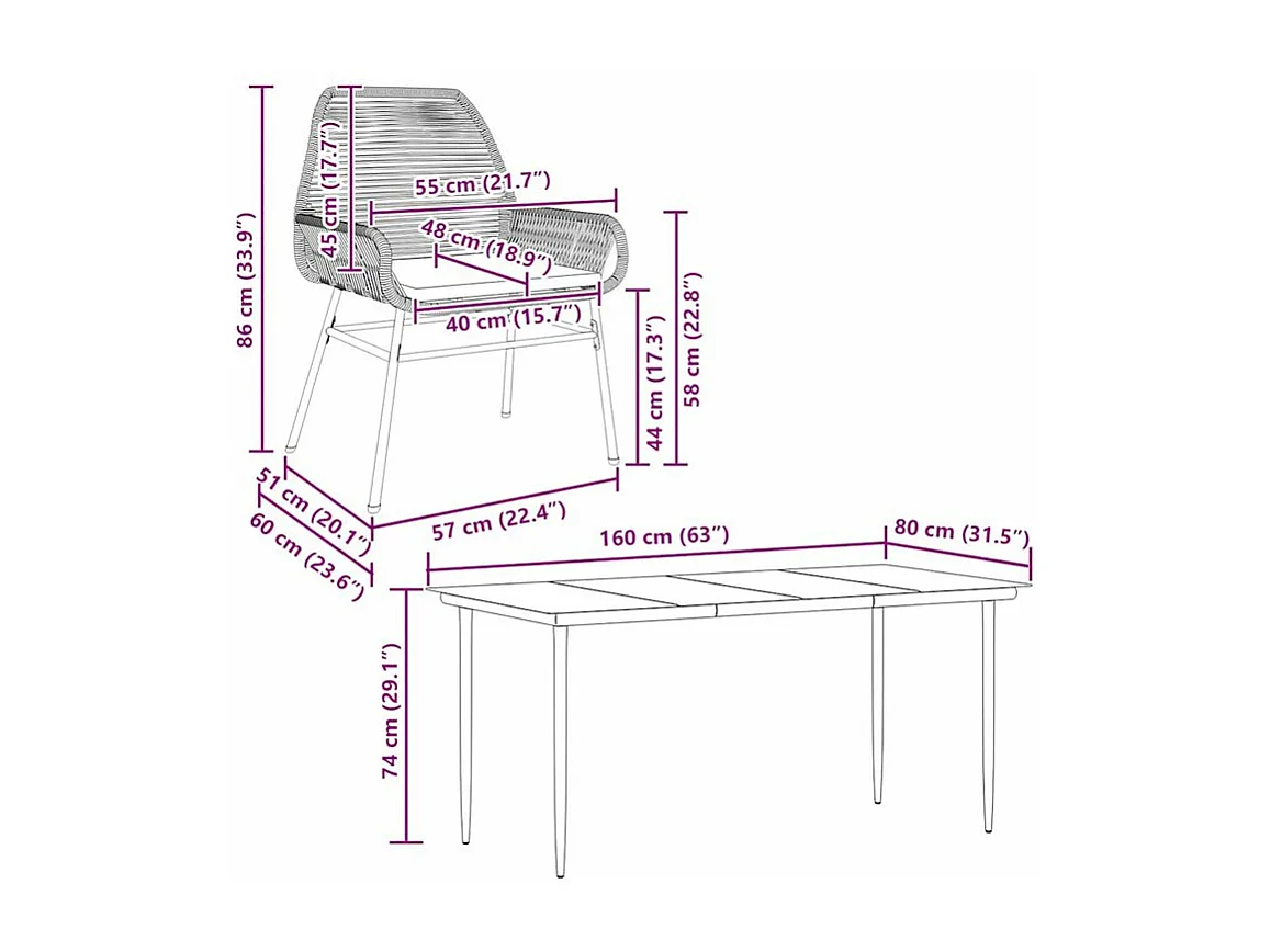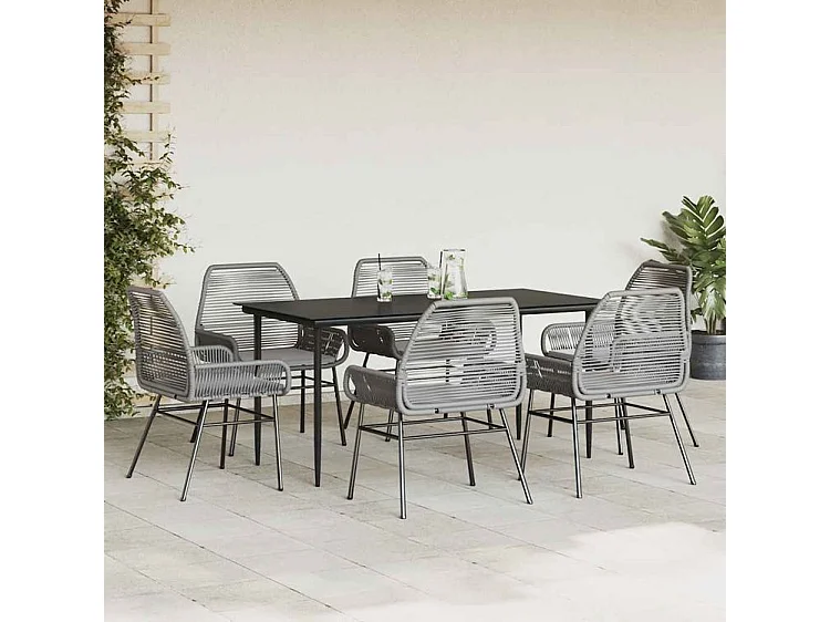 Ensemble à manger jardin coussins 7 pcs gris poly rotin verre