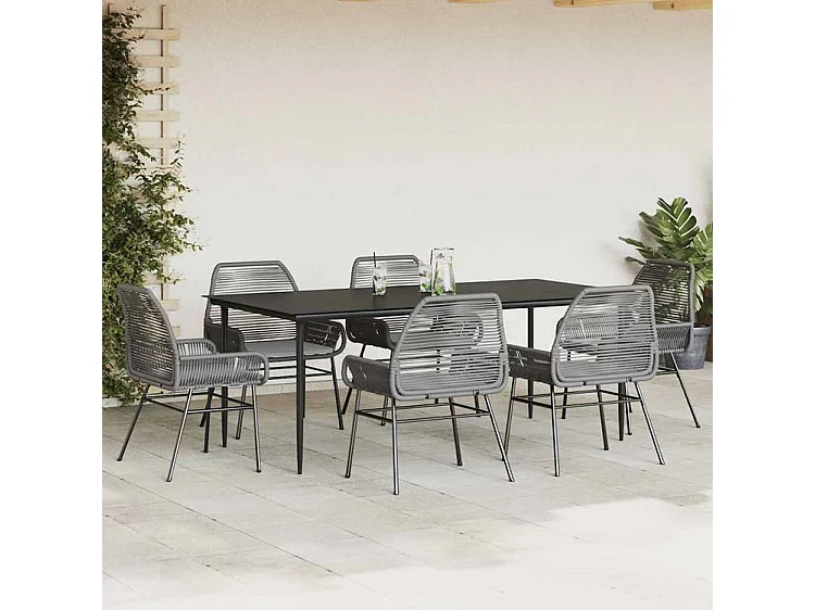 Ensemble à manger jardin coussins 7 pcs gris poly rotin verre