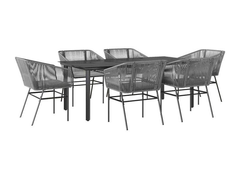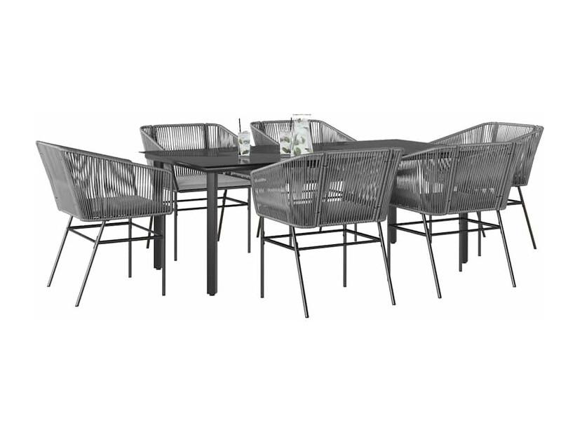 Ensemble à manger jardin coussins 7 pcs gris poly rotin verre