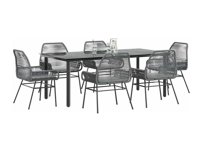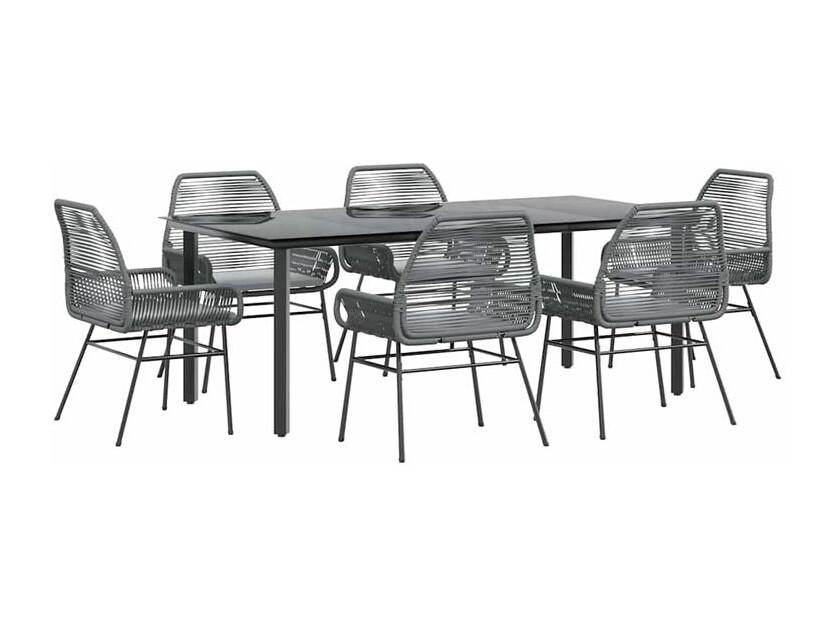 Ensemble à manger jardin coussins 7 pcs gris poly rotin verre
