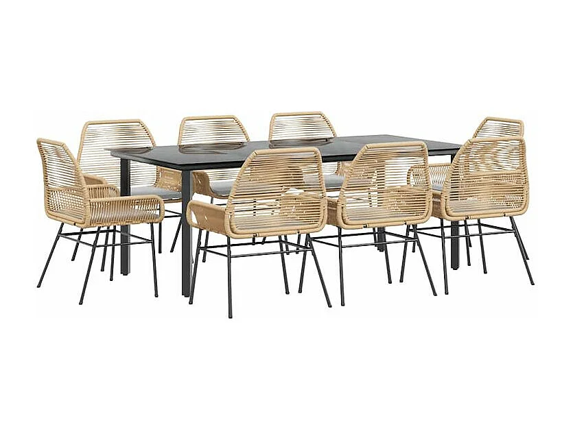 Ensemble à manger jardin coussins 9pcs marron poly rotin verre