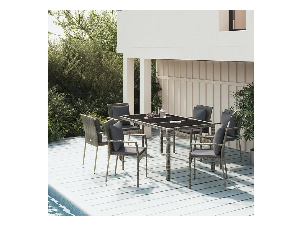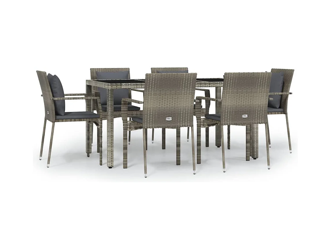 Ensemble à manger jardin et coussins 7 pcs gris rotin