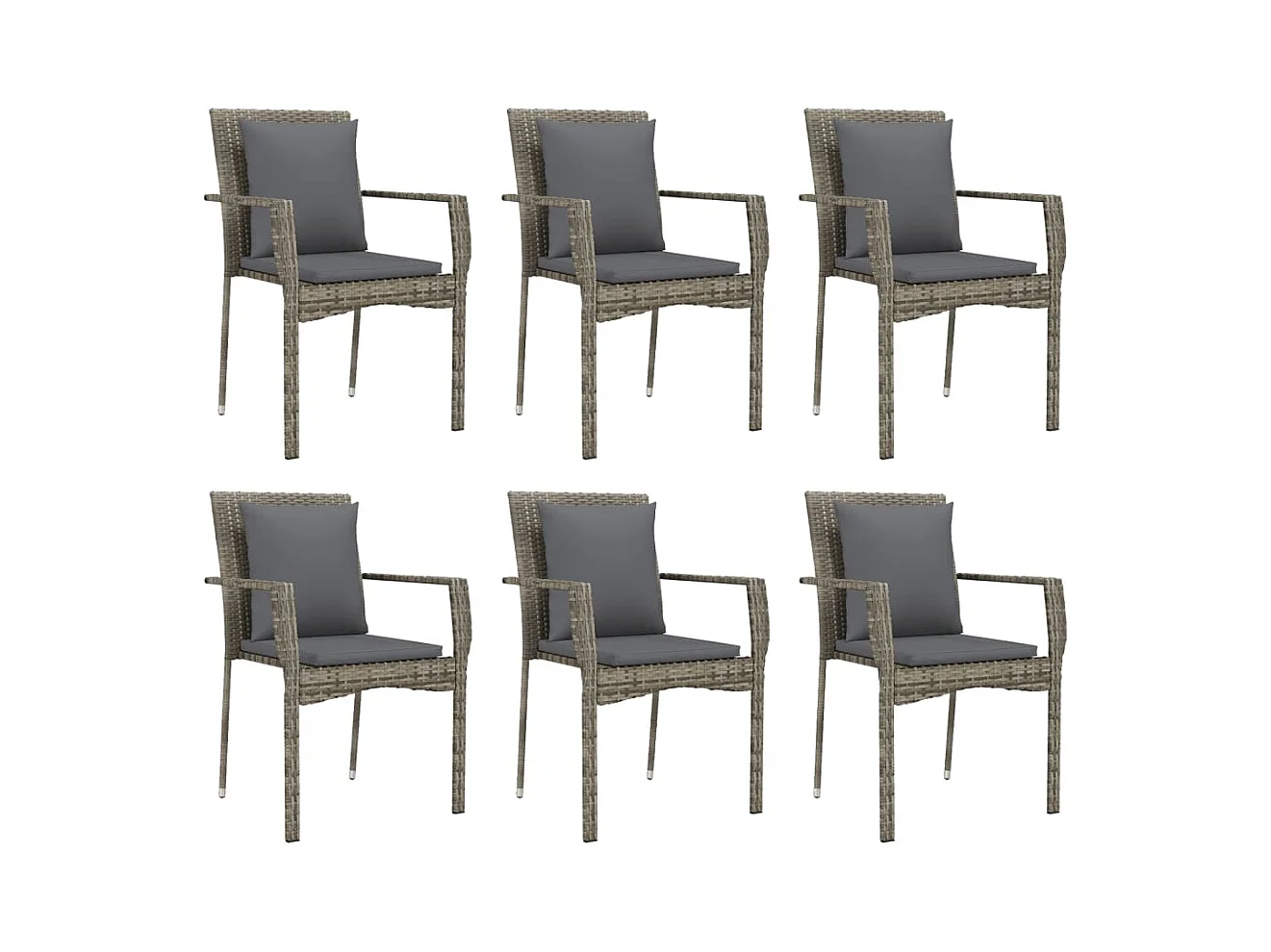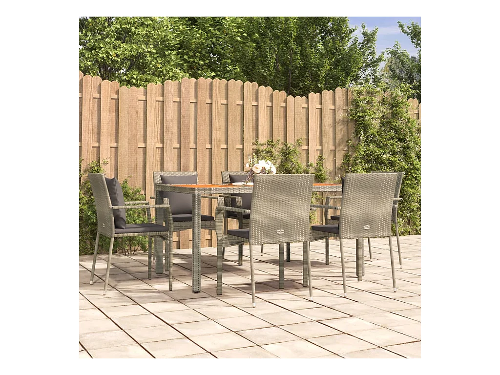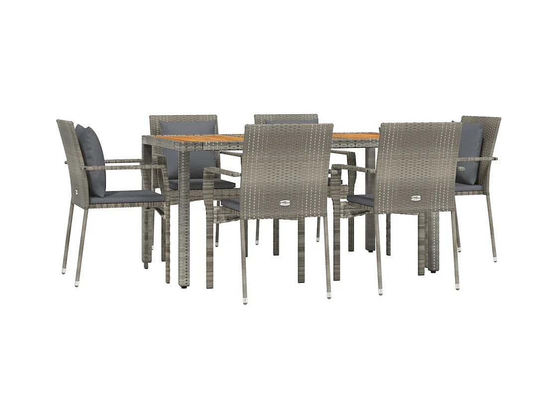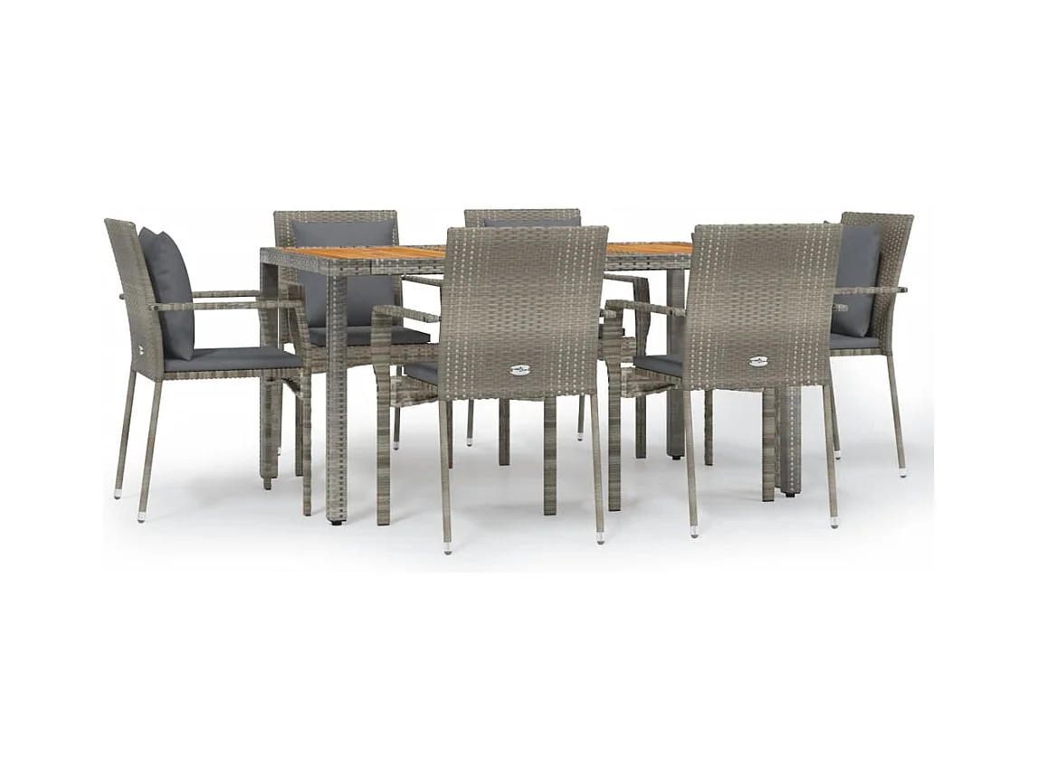 Ensemble à manger jardin et coussins 7 pcs gris rotin