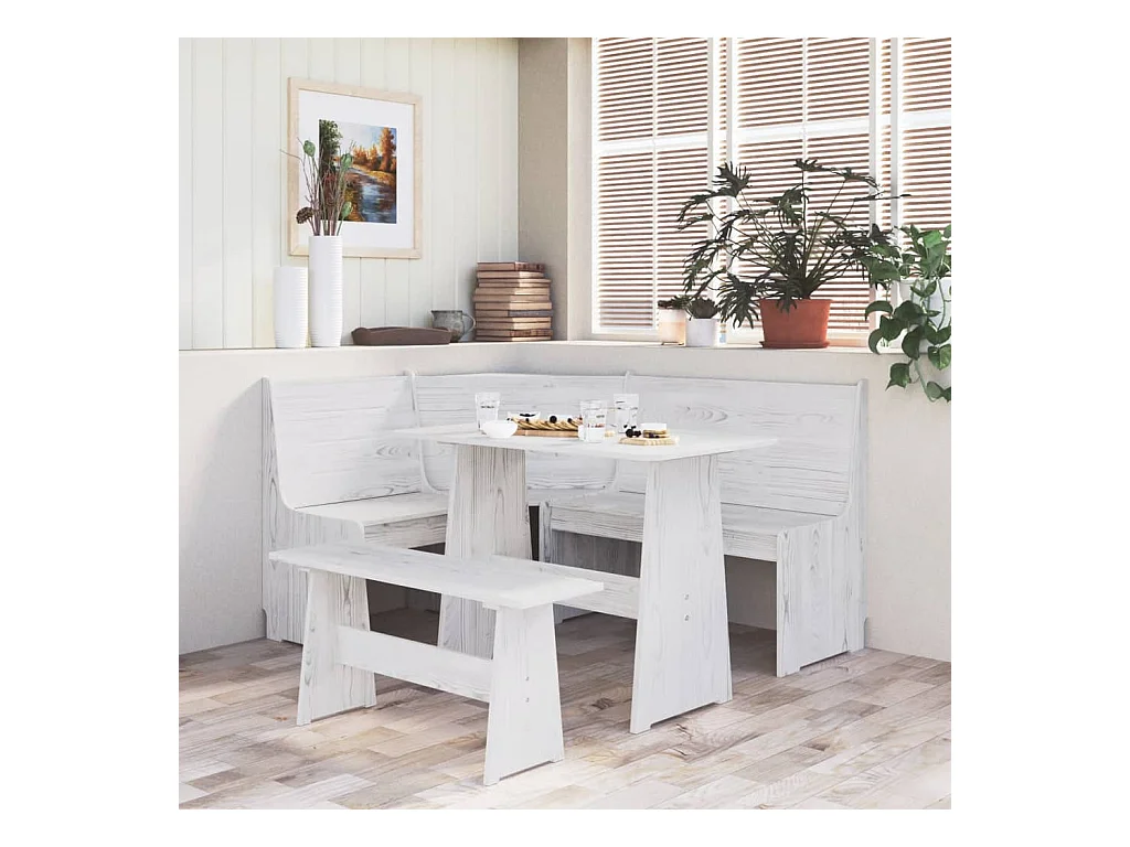 Ensemble à manger REINE 3 pcs blanc bois de pin massif