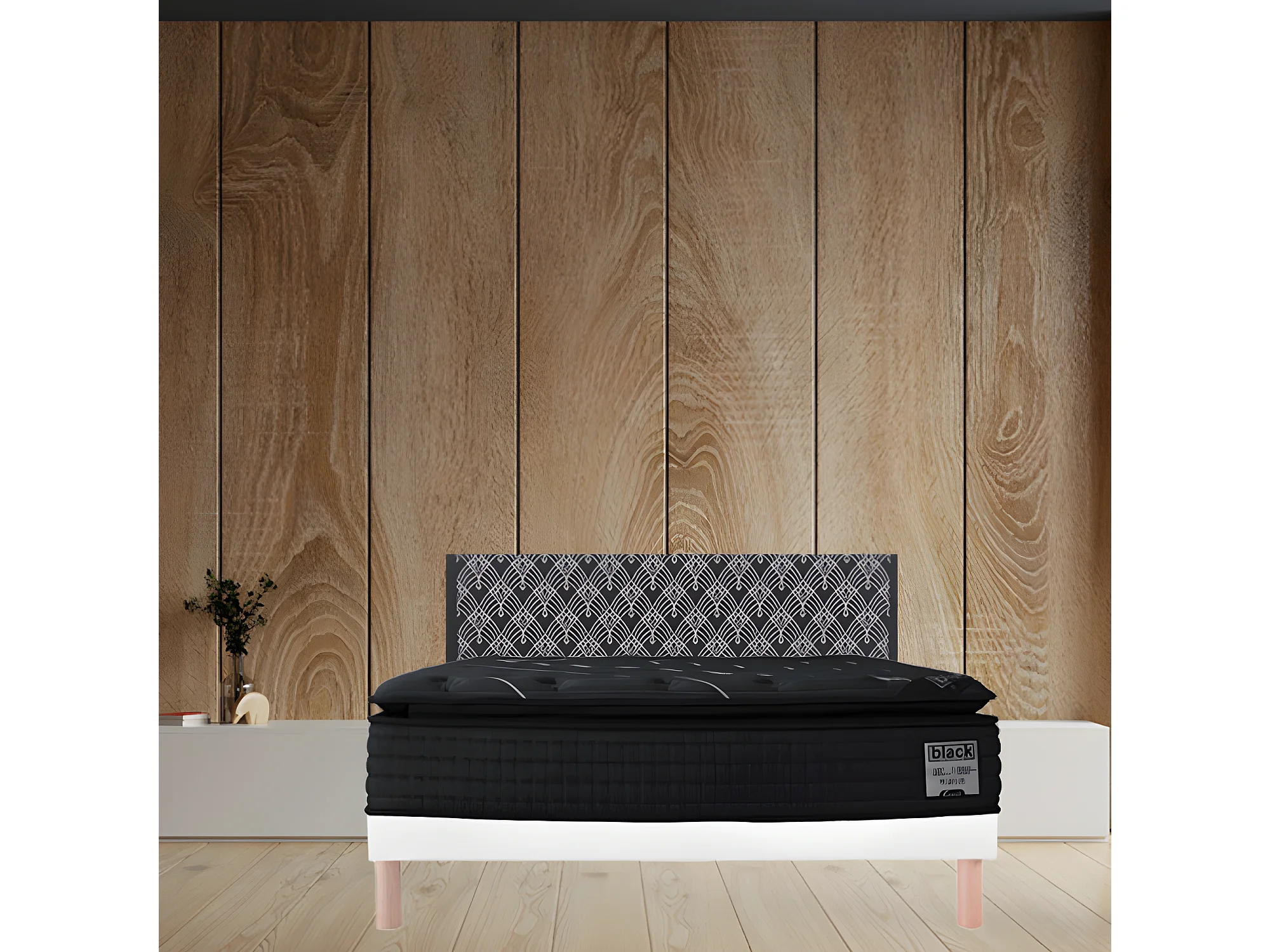Ensemble Alitea BLACK EDITION + Sommier KIT + pieds 140x190 Ressorts