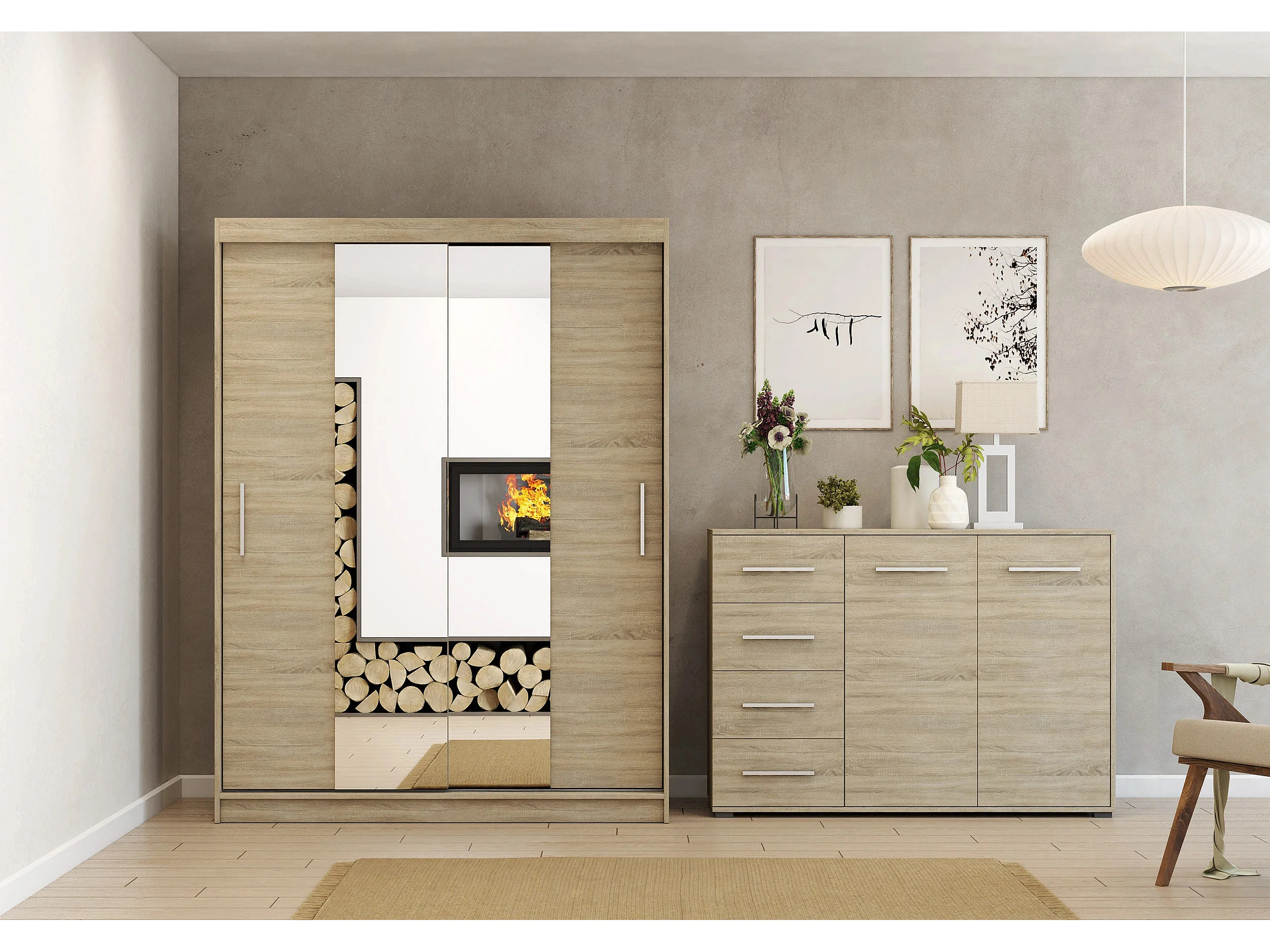 Ensemble armoire Aenora et commode Ilario - Chêne