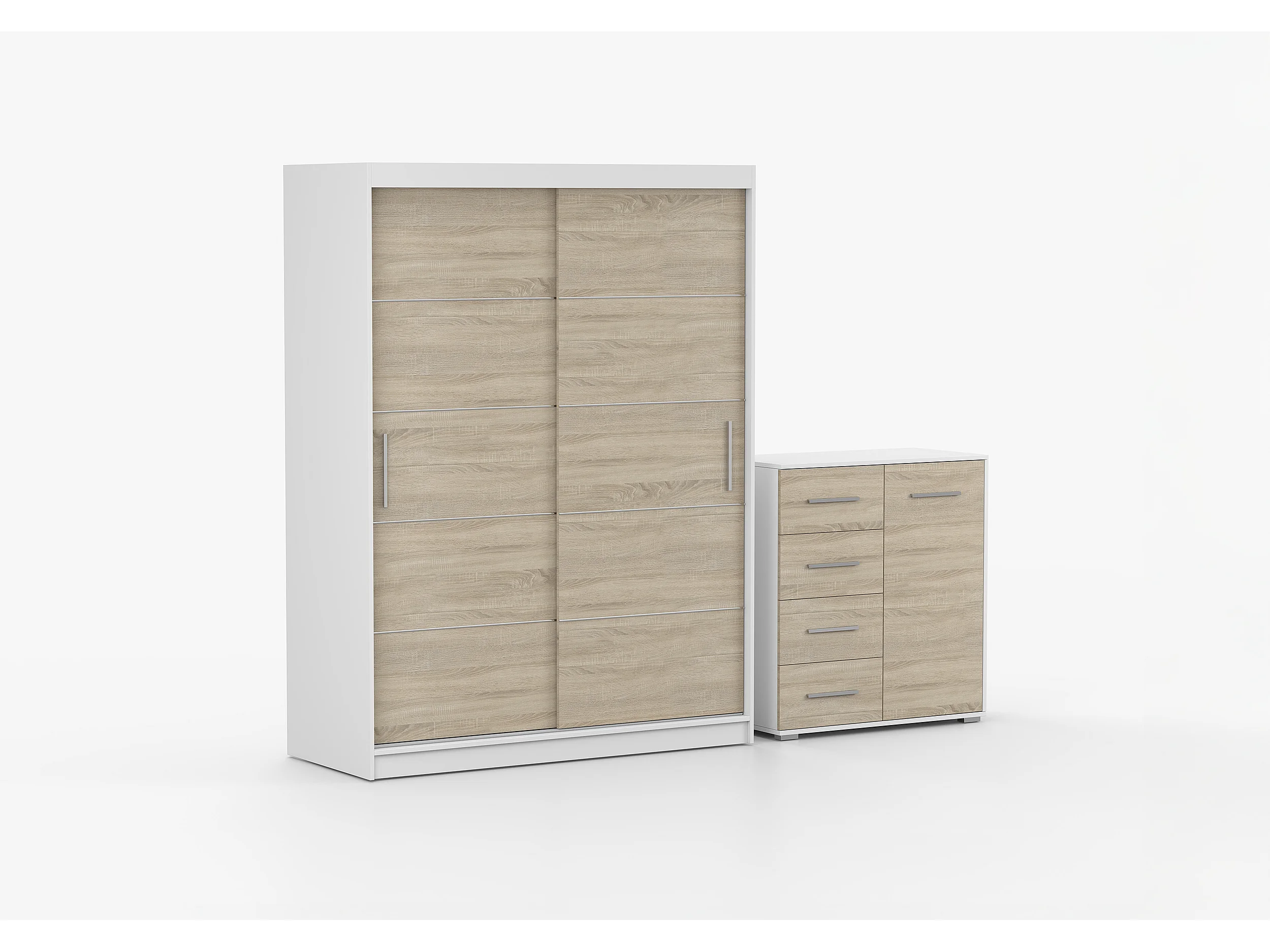 Ensemble armoire Aliona et commode Ilario - Blanc - Chêne
