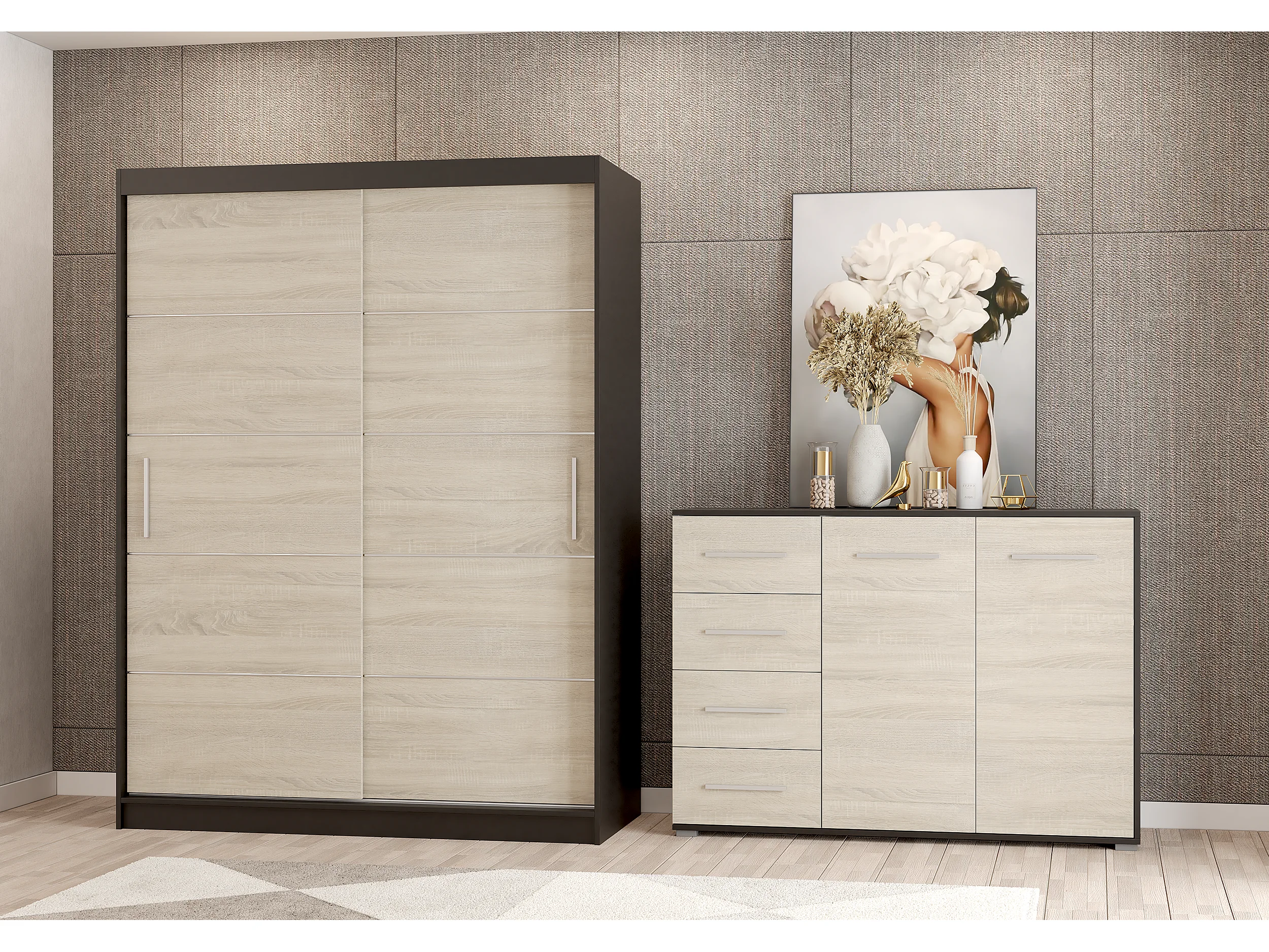 Ensemble armoire Aliona et commode Ilario - Noir - Chêne