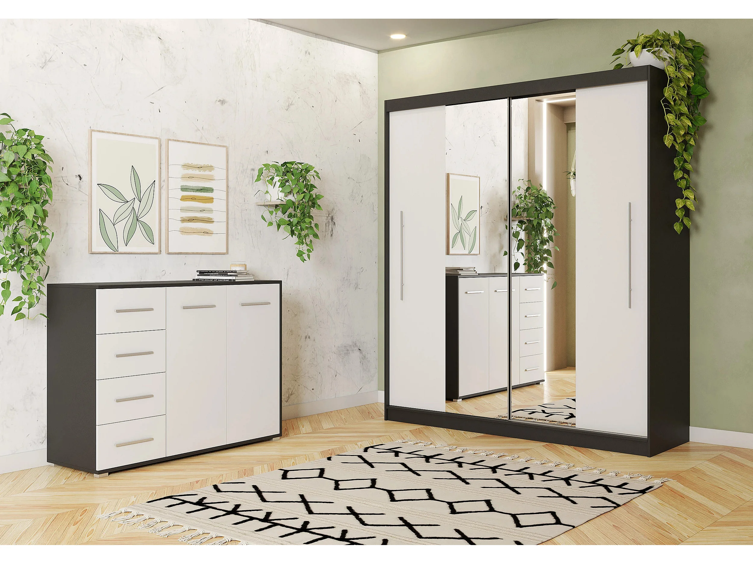Ensemble armoire Eireen et commode Ilario avec miroir - Noir - Blanc