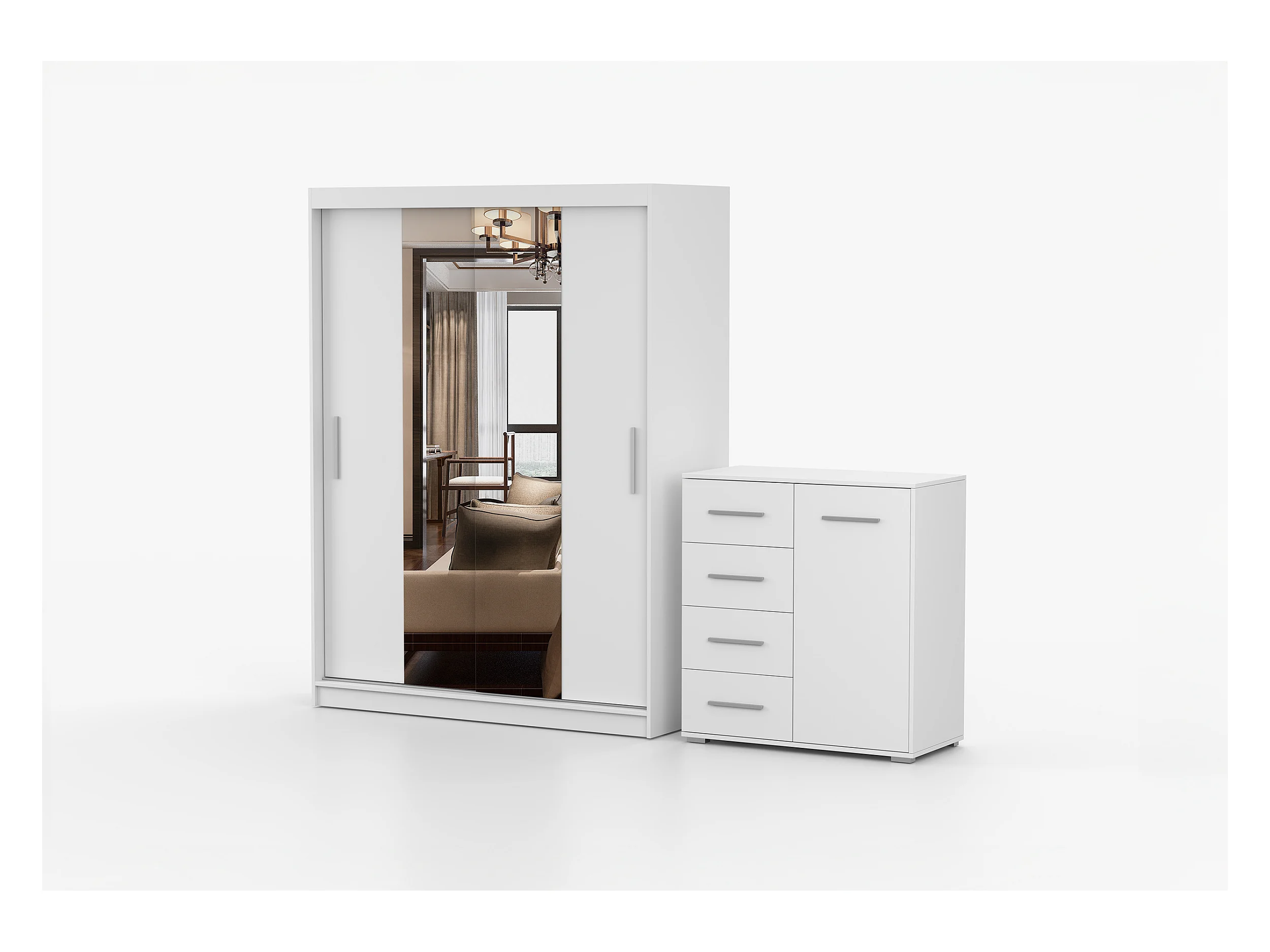 Ensemble armoire et commode Aenora Ilario avec miroir - Blanc