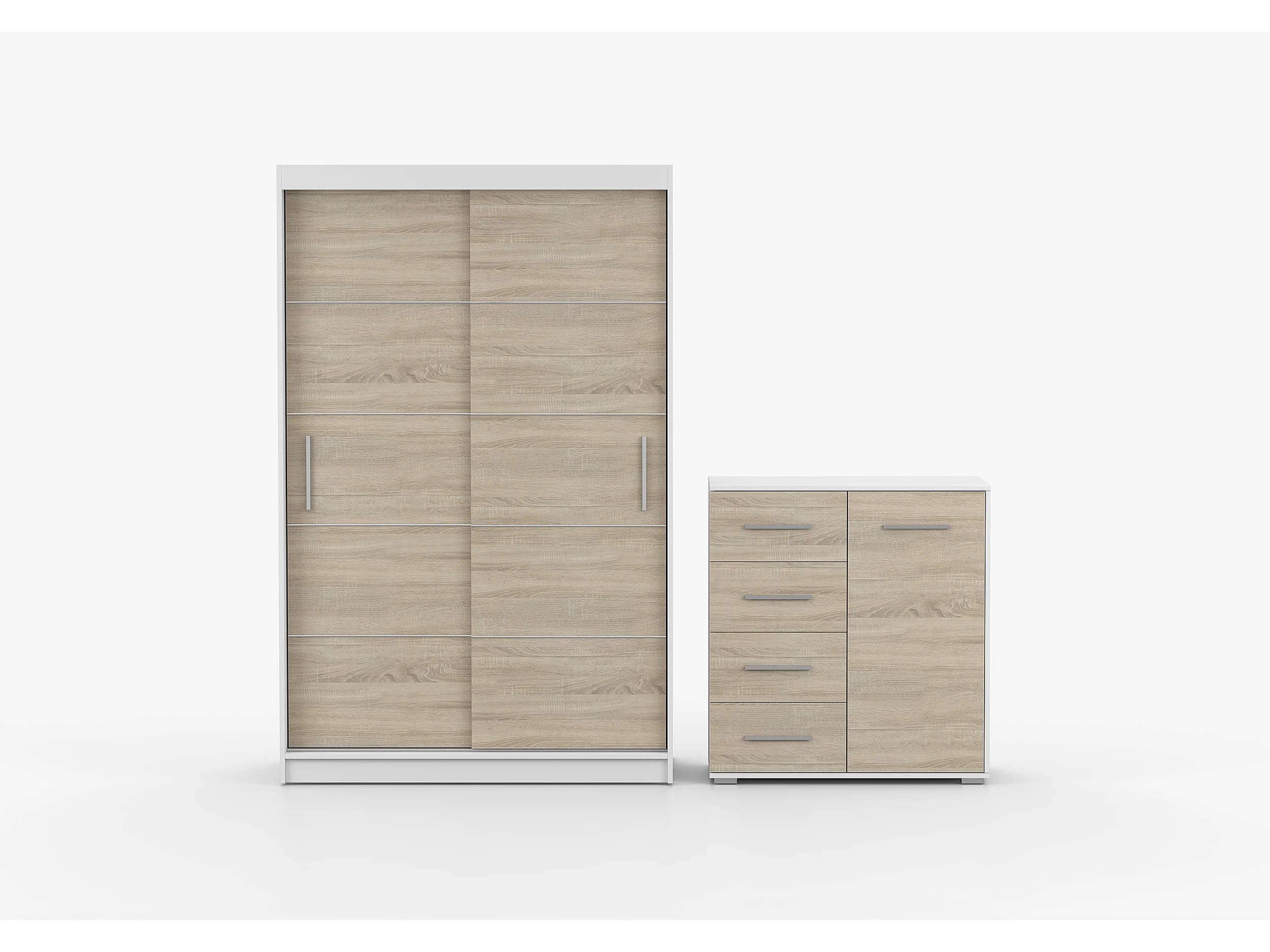 Ensemble armoire Lilwenn et commode Ilario - Blanc - Chêne