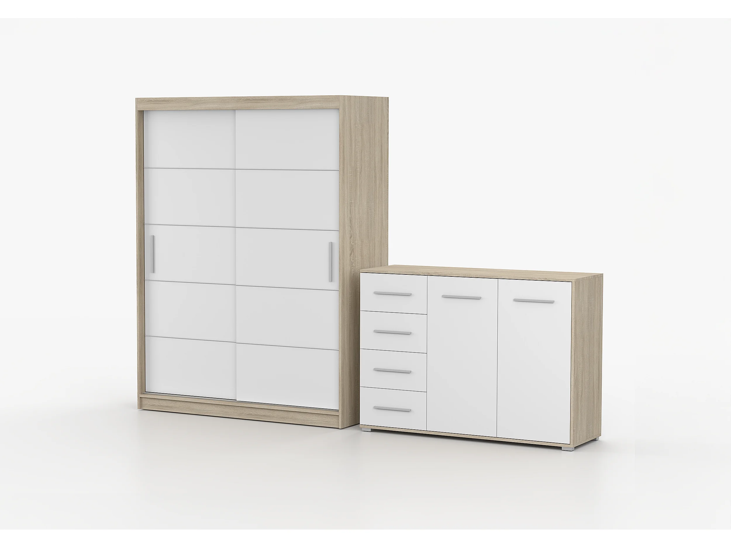 Ensemble armoire Lilwenn et commode Ilario - Chêne - Blanc