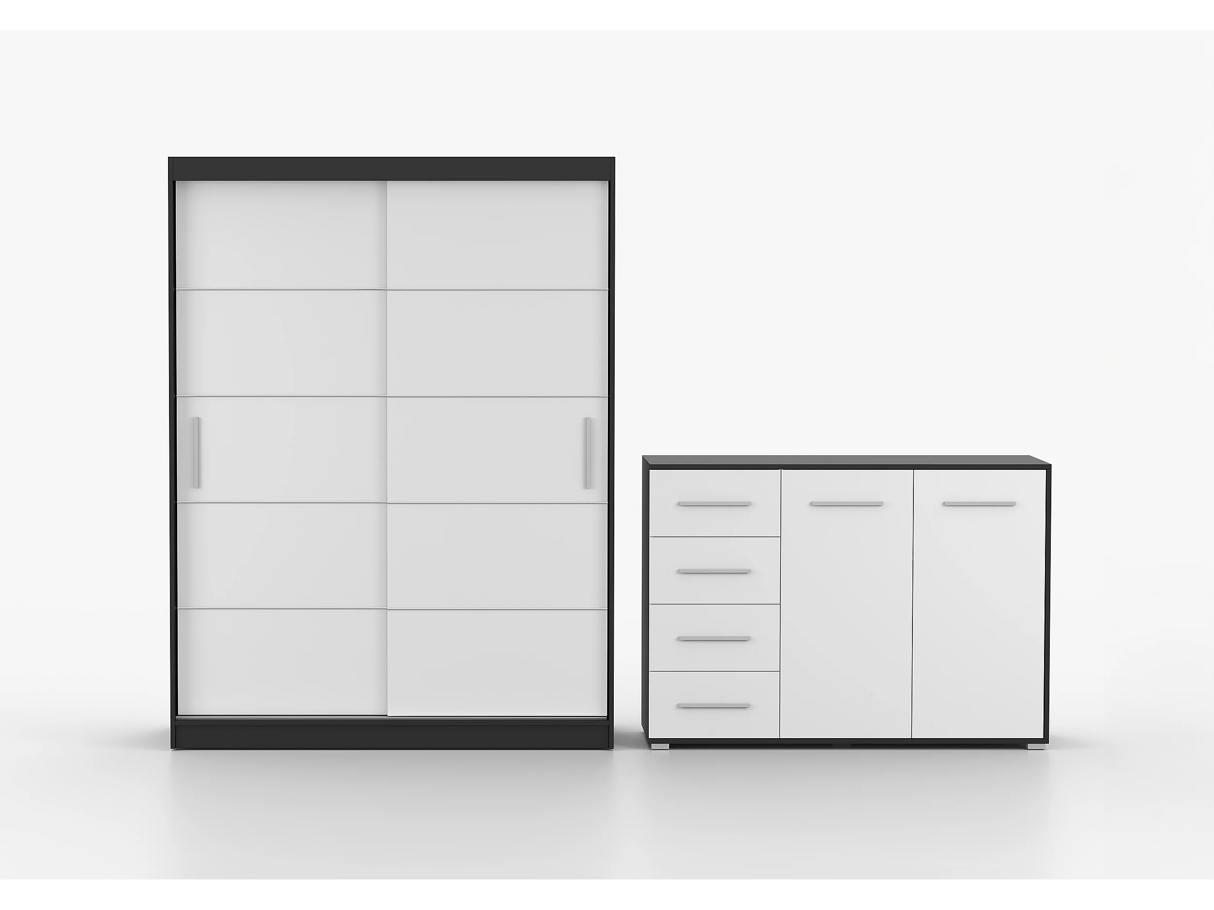 Ensemble armoire Lilwenn et commode Ilario - Noir - Blanc