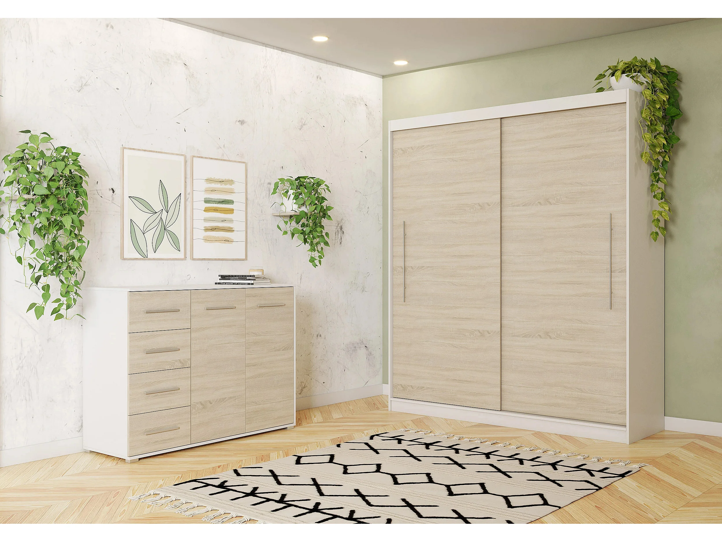 Ensemble armoire Miralys avec commode Ilario - Blanc - Chêne