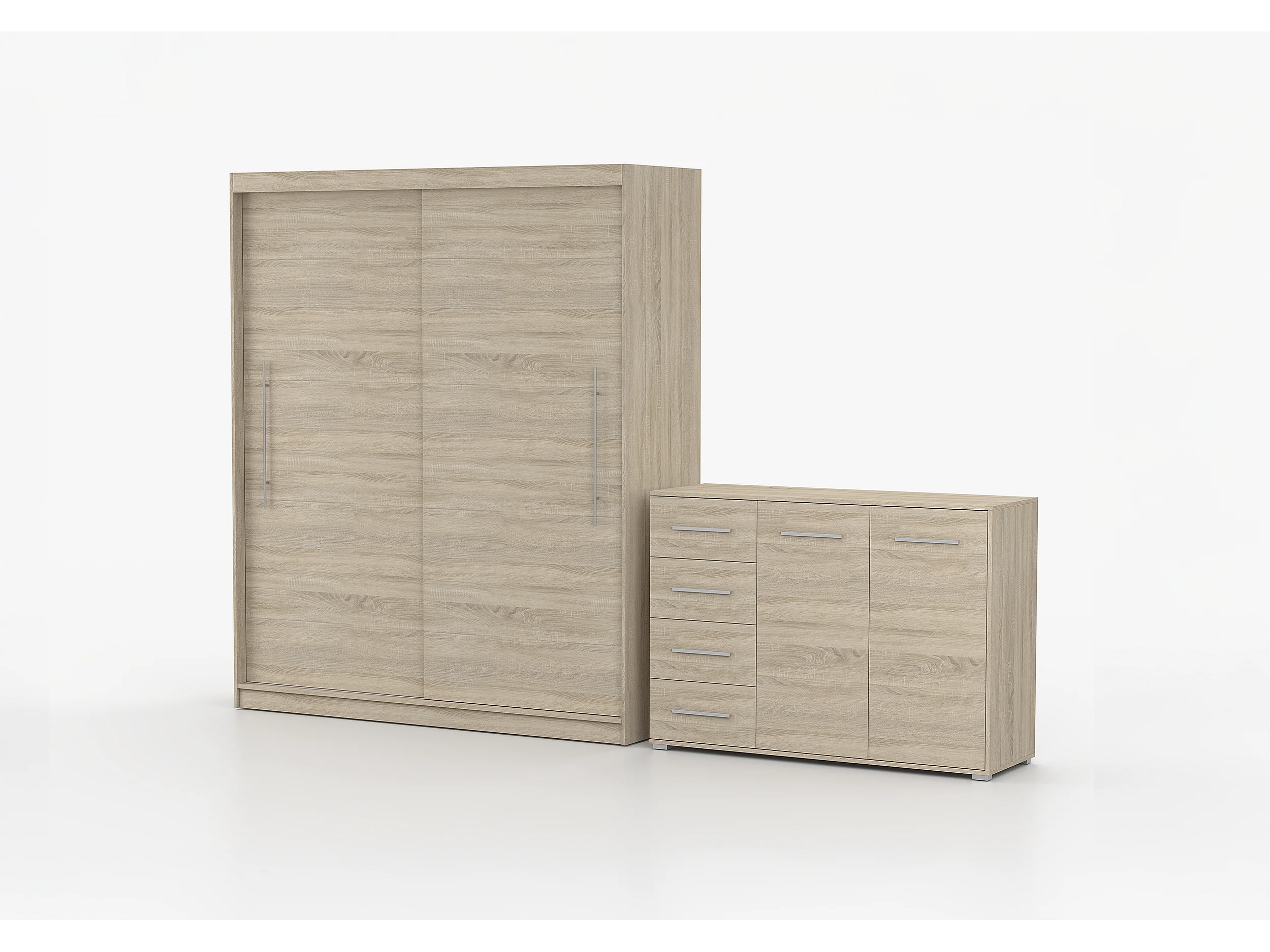 Ensemble armoire Miralys avec commode Ilario - Chêne