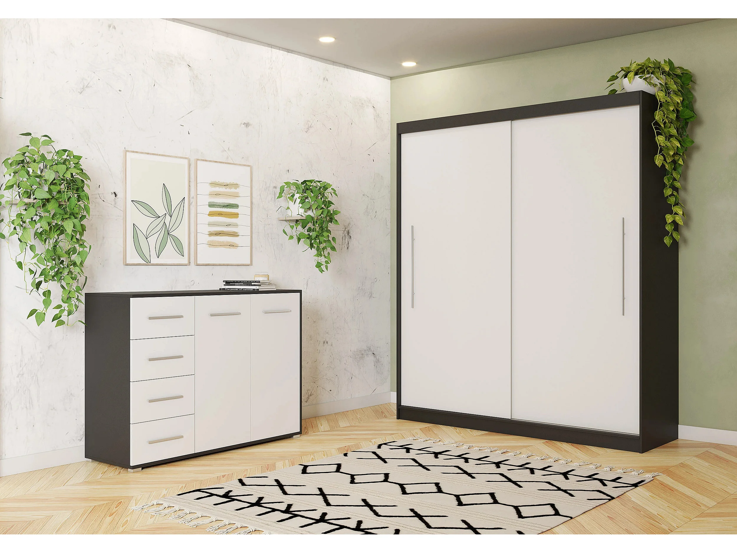 Ensemble armoire Miralys avec commode Ilario - Noir - Blanc