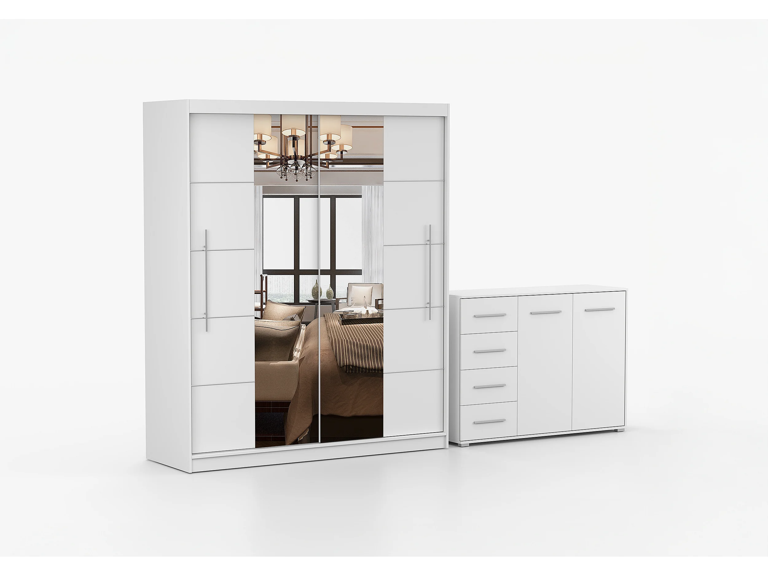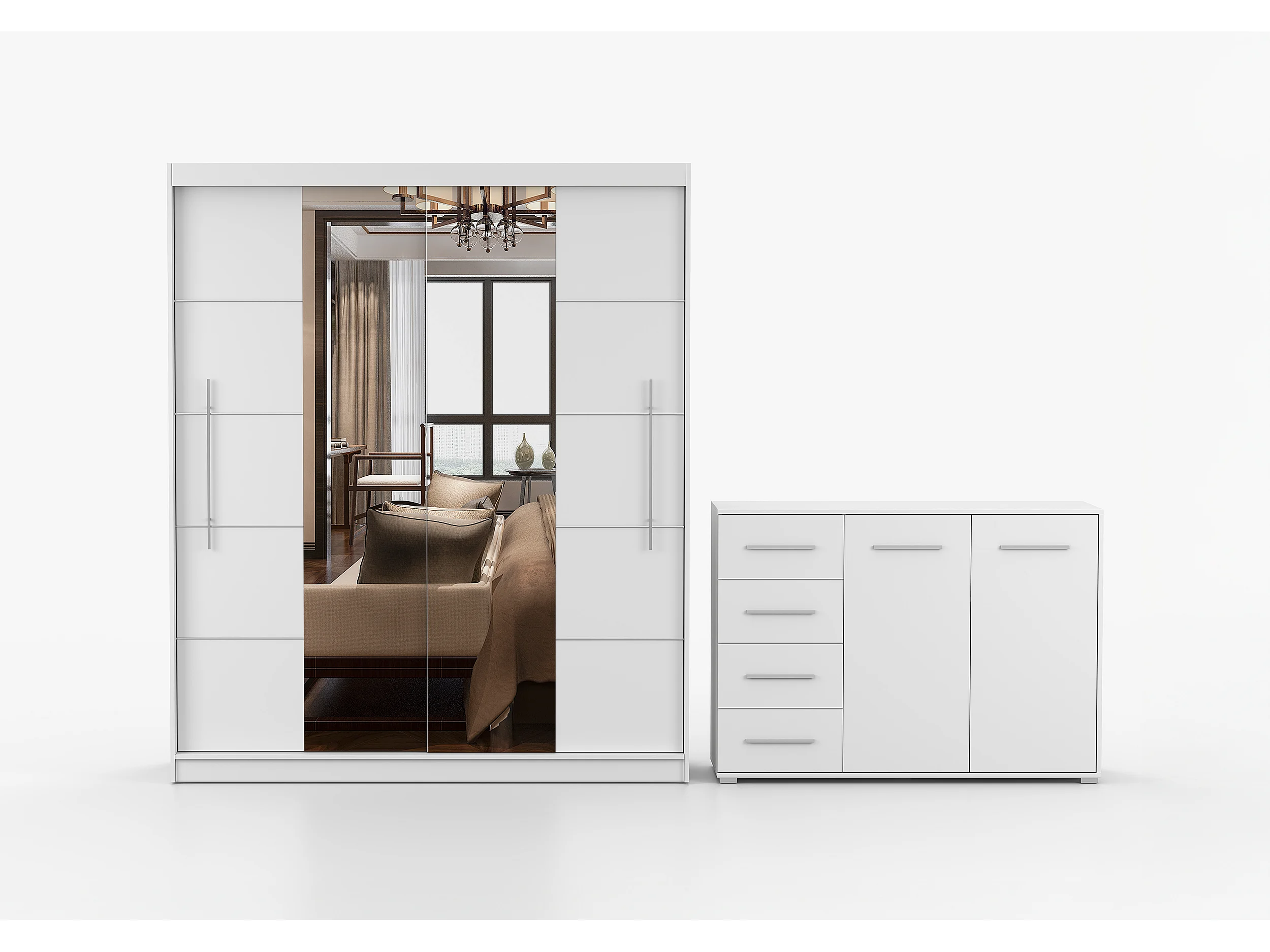 Ensemble armoire Orelia et commode Ilario avec miroir - Blanc
