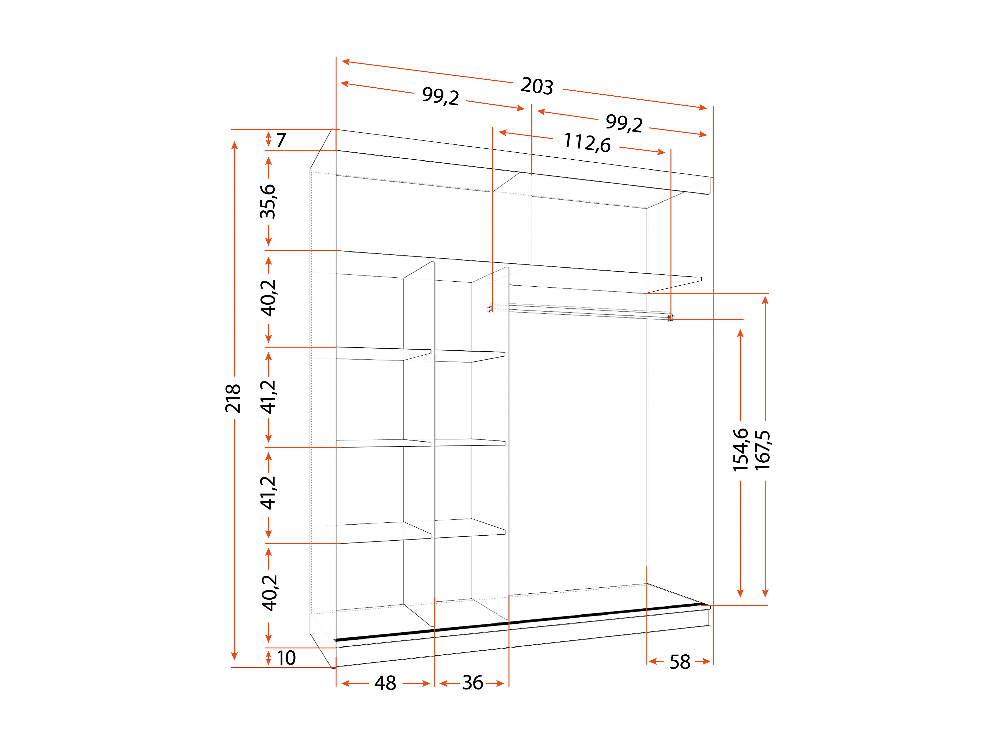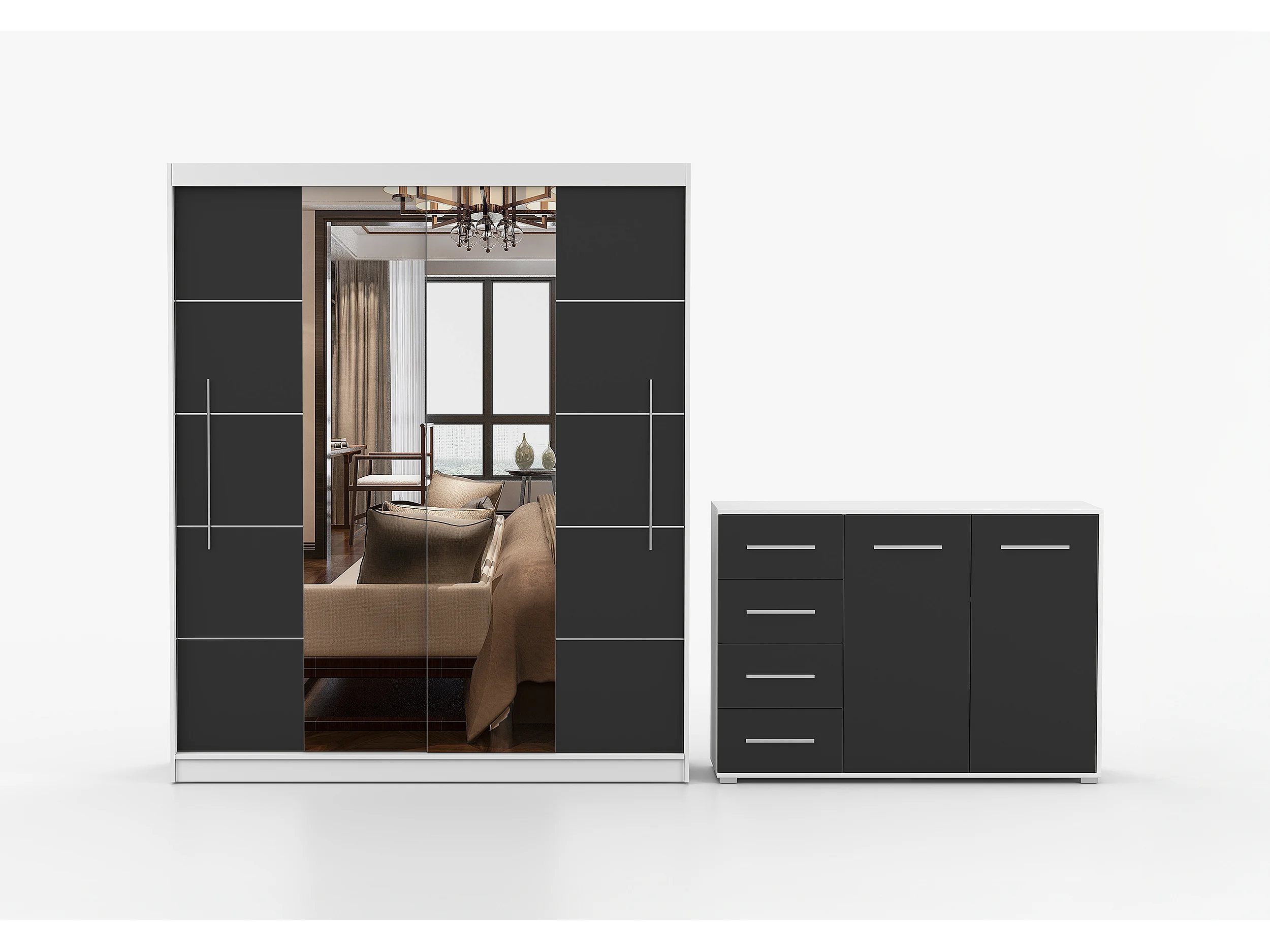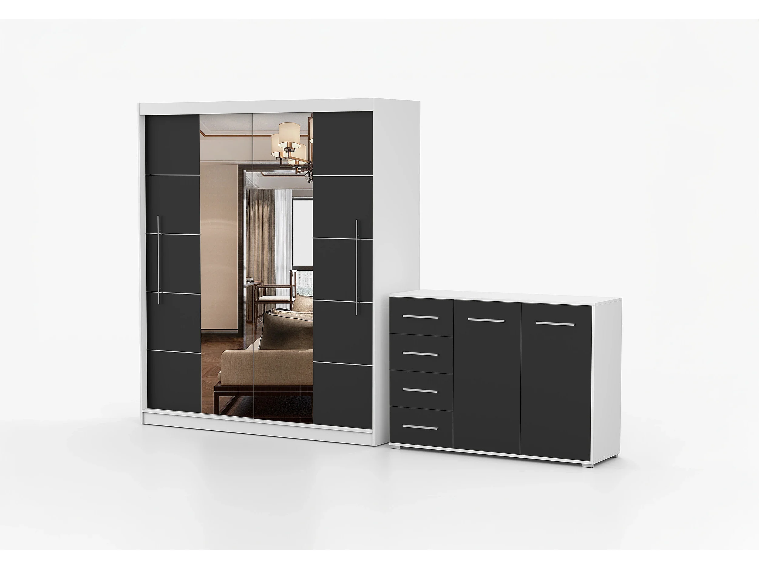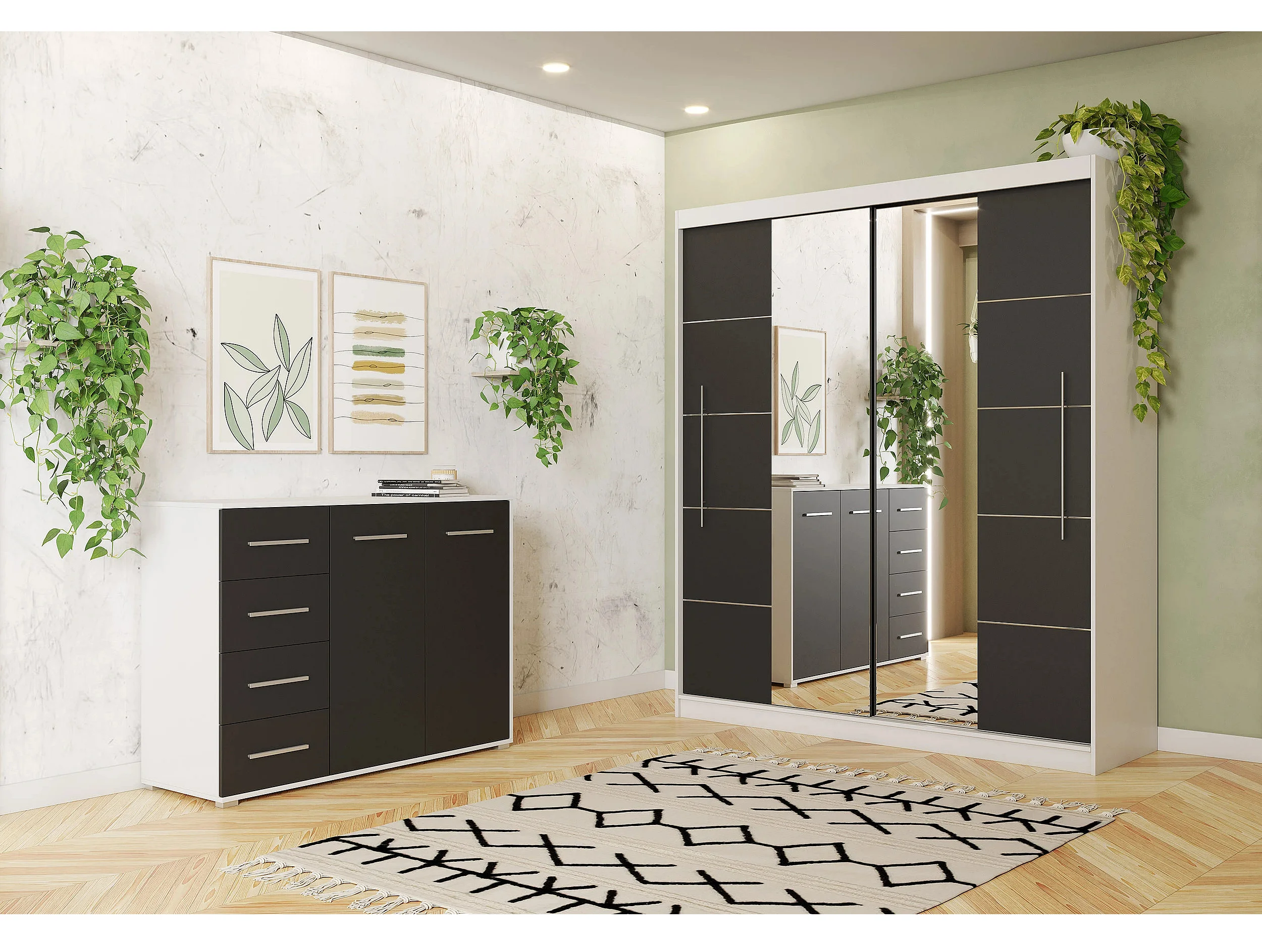Ensemble armoire Orelia et commode Ilario avec miroir - Blanc - Noir