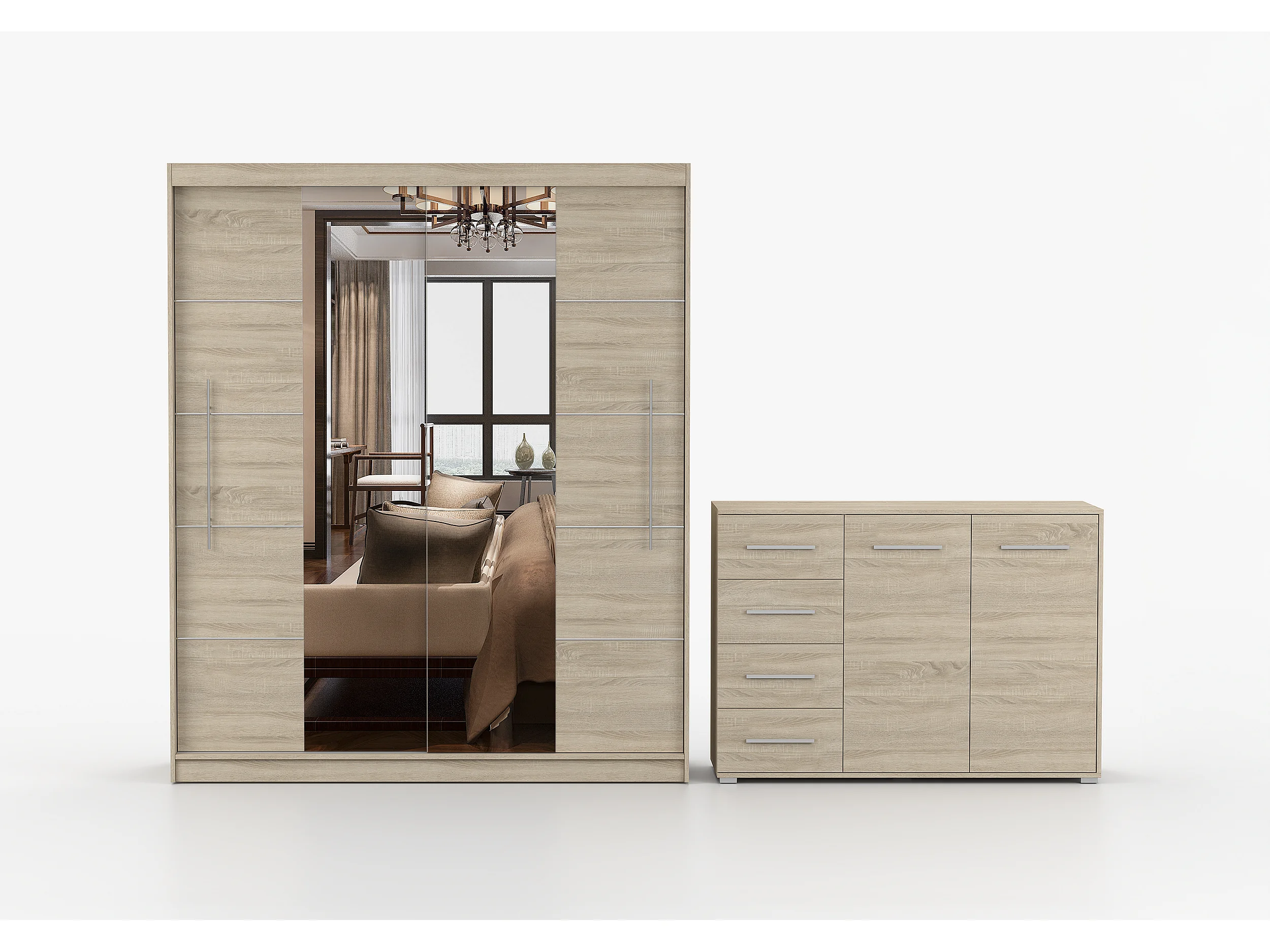 Ensemble armoire Orelia et commode Ilario avec miroir - Chêne